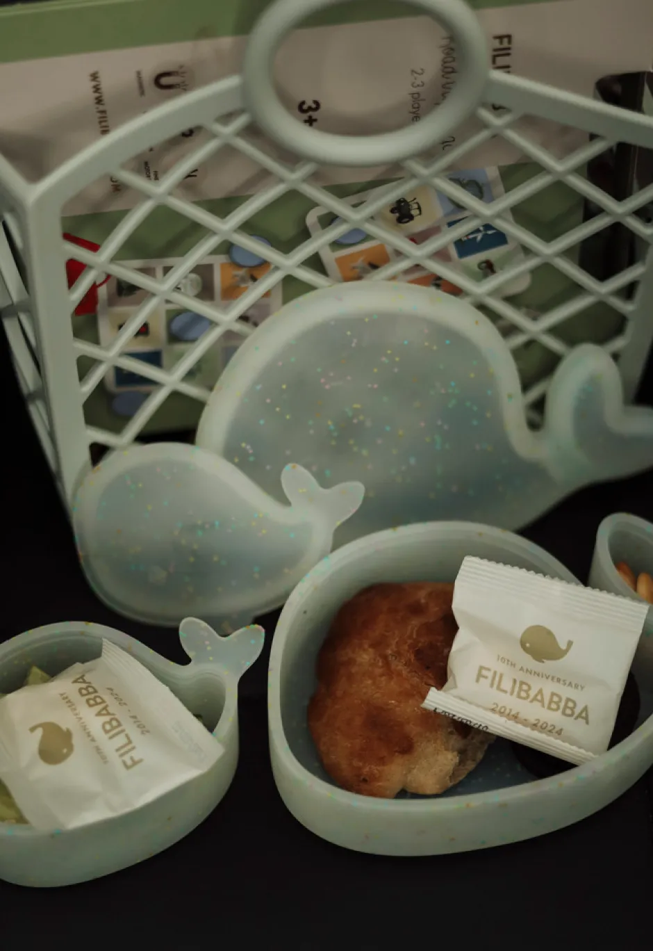 Ingen strandtur er komplet uden en picnic, for så snart du sætter dig på tæppet, melder sulten sig! Heldigvis er de voksne godt forberedte:Med den hvalformede silikoneskål bliver alle dine yndlingssnacks serveret på et splitsekund! Vil du gerne gemme noget til senere, er det intet problem – du lukker blot hval-skålen med det passende låg. På den måde undgår du, at maden bliver fyldt med sand og holder den frisk længere.