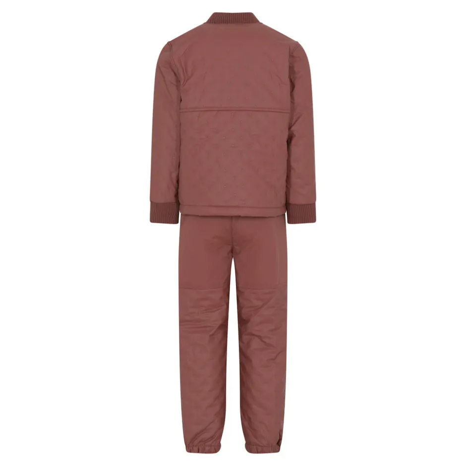 Termotøj med PU-belægning, som gør termotøjet vandtæt. Derudover er sættet foret indvendigt. Ekstra forstærket på knæ og bagpå på bukserne. Bukserne har desuden elastik i talje og ved ankler. Jakken har ribkant ved hals og håndled samt lynlåslukning. CeLaVi-logo foran.