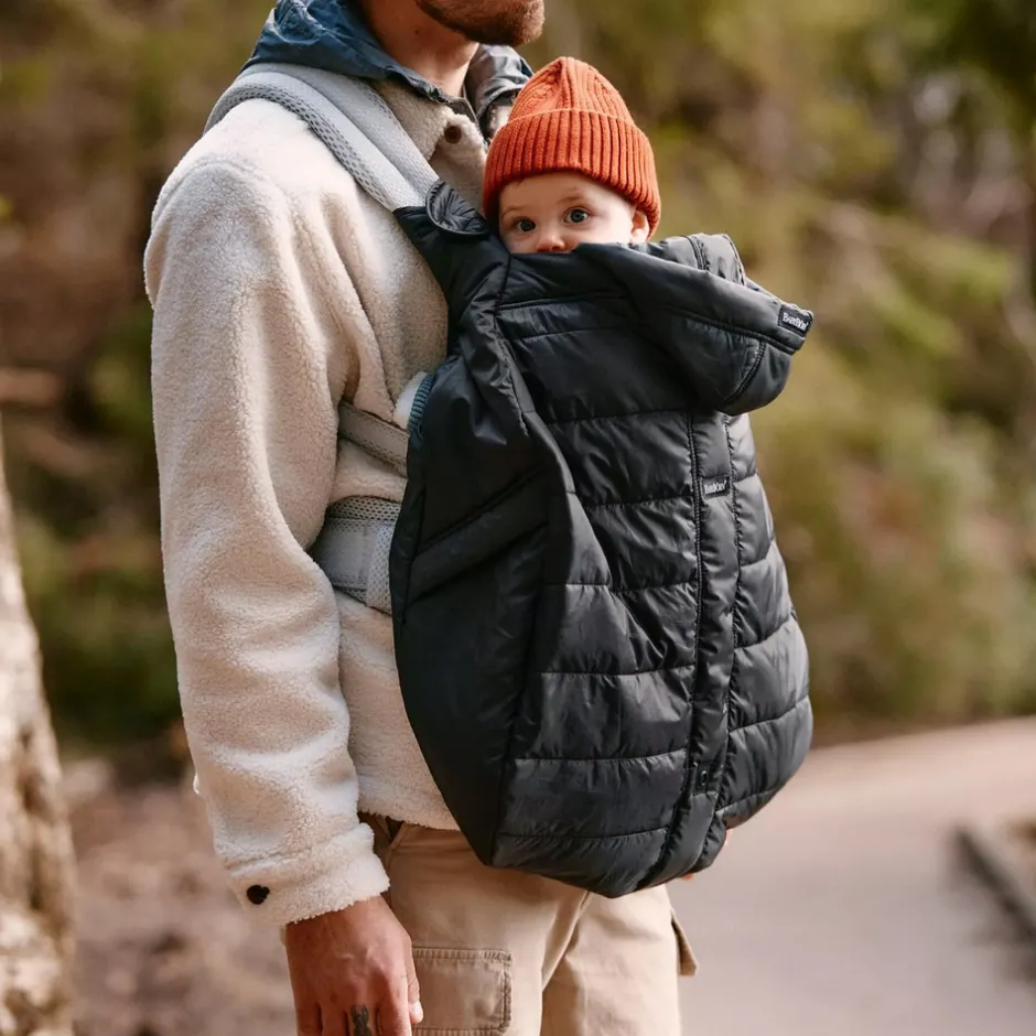 Vinterovertræk til Babybjørn-bæreseler. Det polstrede overtræk holder din lille varm i de kolde vintermåneder. Vinterovertrækket er varmt, men let, og har en vendbar og aftagelig hætte. For ekstra beskyttelse er overtrækket vind- og vandafvisende.