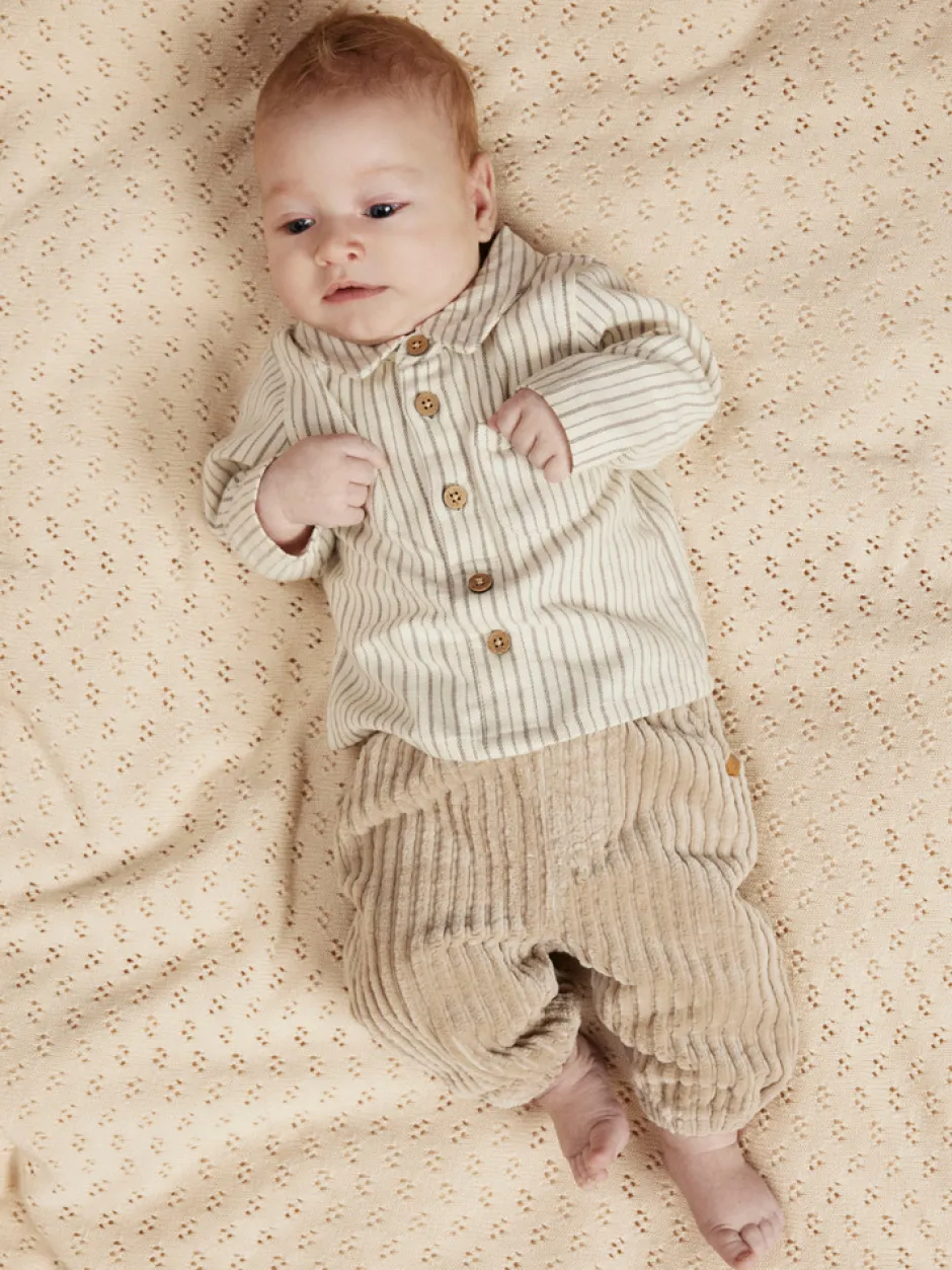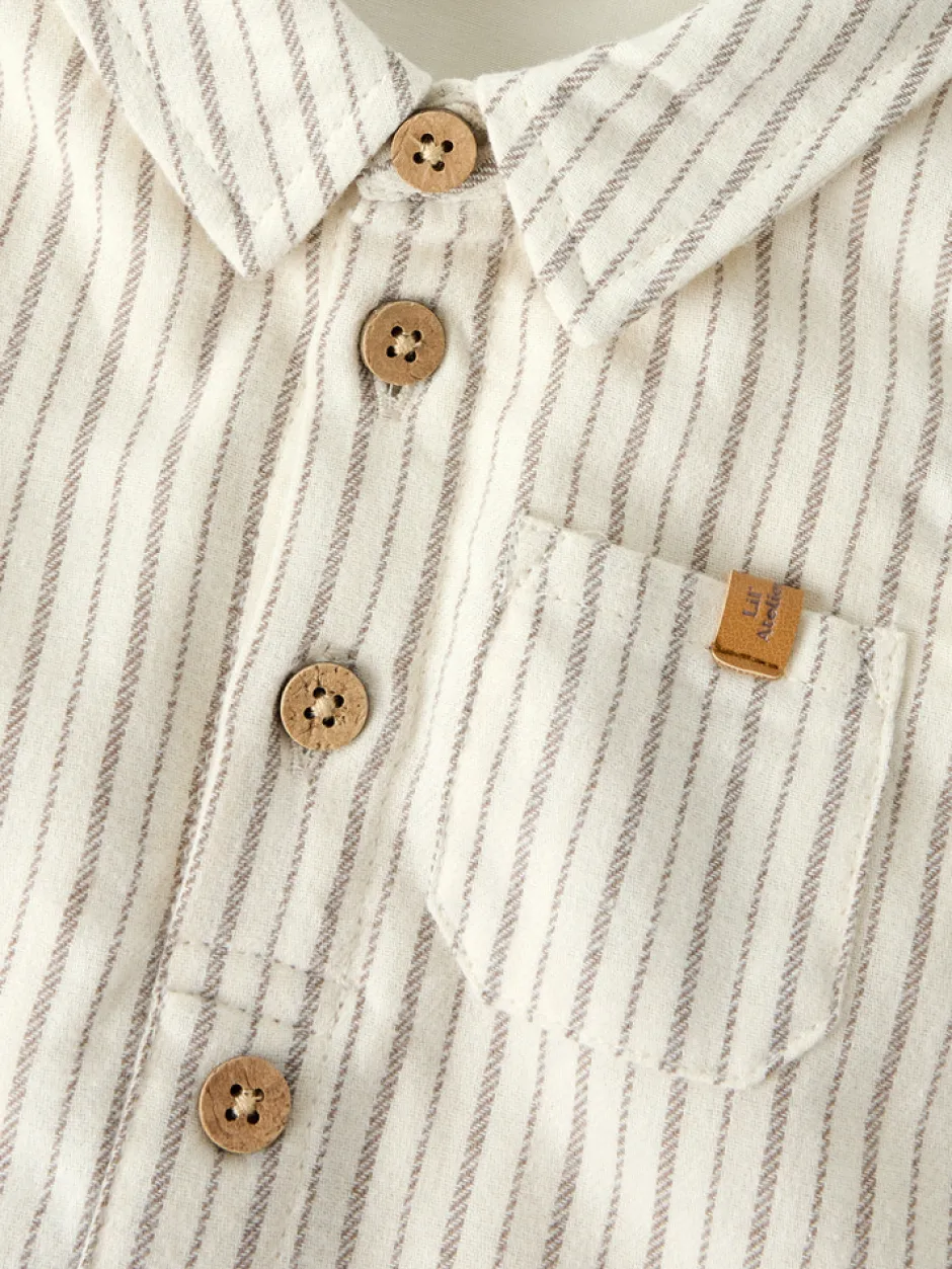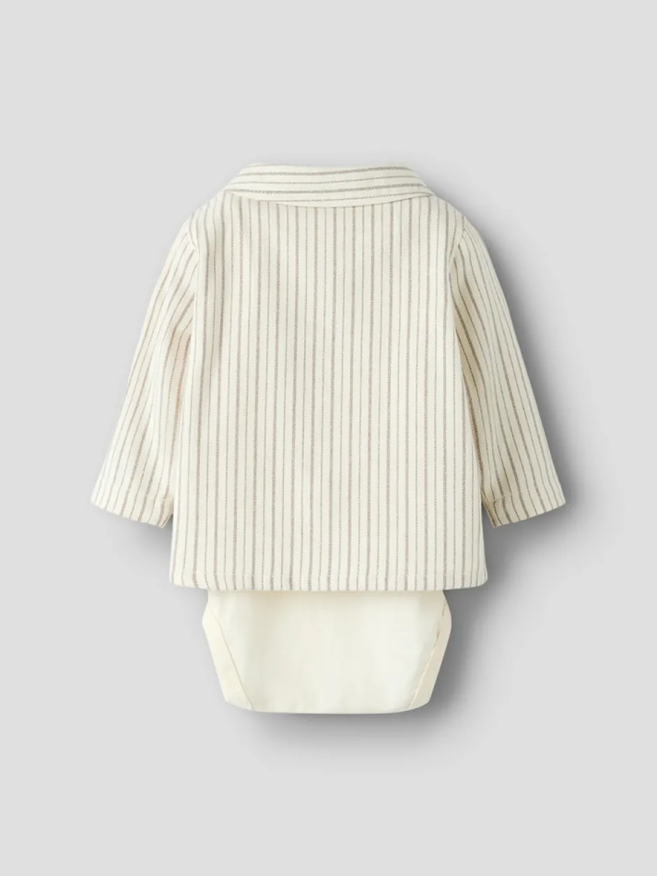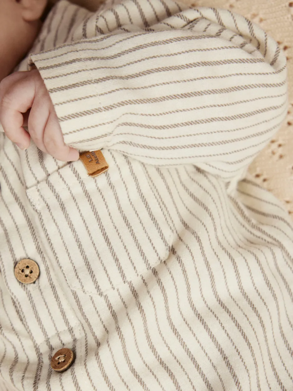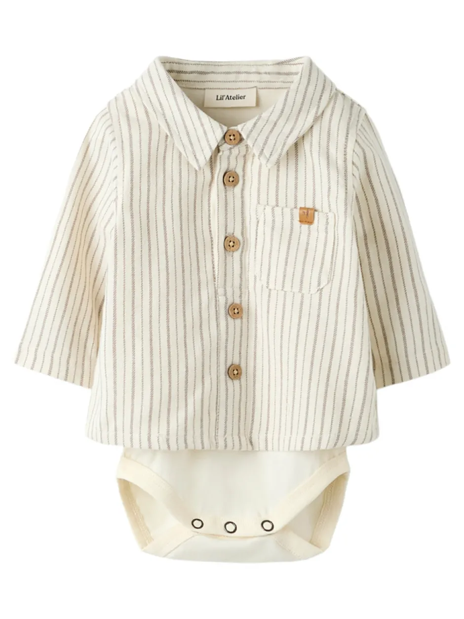 Felixo Langærmet Bodyskjorte fra Lil’ Atelier kombinerer det elegante skjorteudtryk med den praktiske body, så din baby både ser smart ud og har maksimal komfort. Den fine turtledove-farve med diskrete striber og træknapper giver et tidløst og stilfuldt look, der passer til både hverdag og festlige lejligheder. Den bløde kvalitet sikrer, at dit barn kan bevæge sig frit, mens den praktiske brystlomme og de fine detaljer fuldender designet. Bodydelen lukkes nemt med trykknapper, hvilket gør det hurtigt at skifte ble og klæde barnet på. En skøn og funktionel tilføjelse til garderoben, der forener stil og komfort.