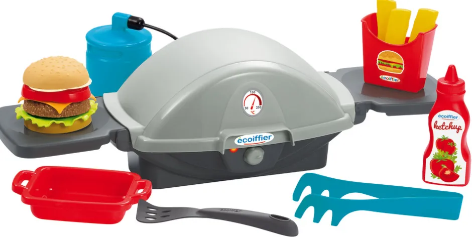Grill med forskelligt burger tilbehør så børn kan invitere på grillaften i haven eller på børneværelset.