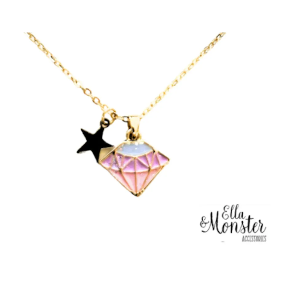 Stjernestøv og diamanter! En halskæde, der glimter som en hemmelig skat fra eventyrlandet. Med sin fine diamant og lille stjerne er den perfekt til små drømmere.