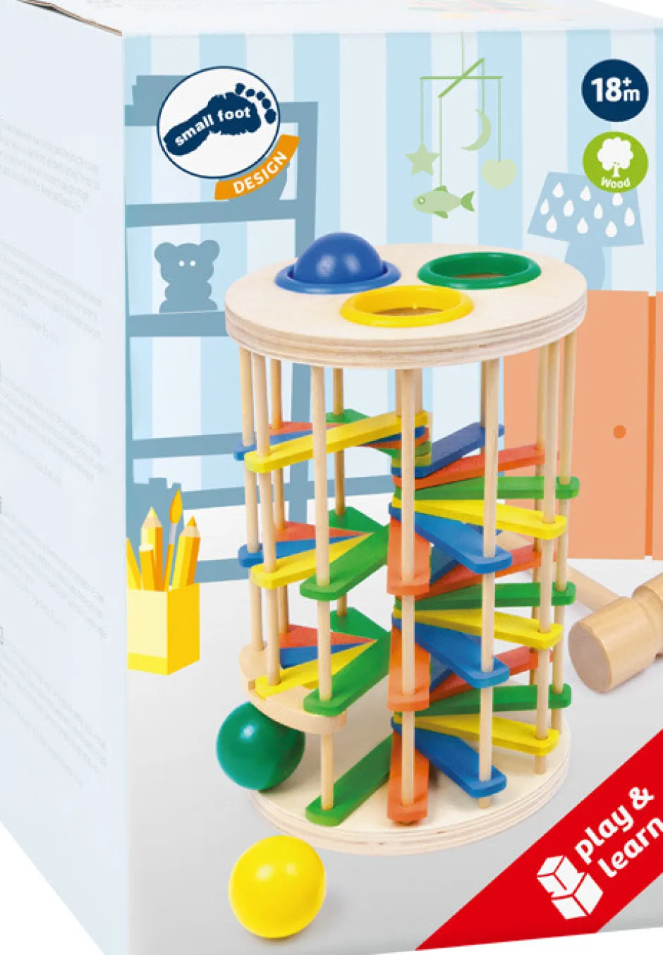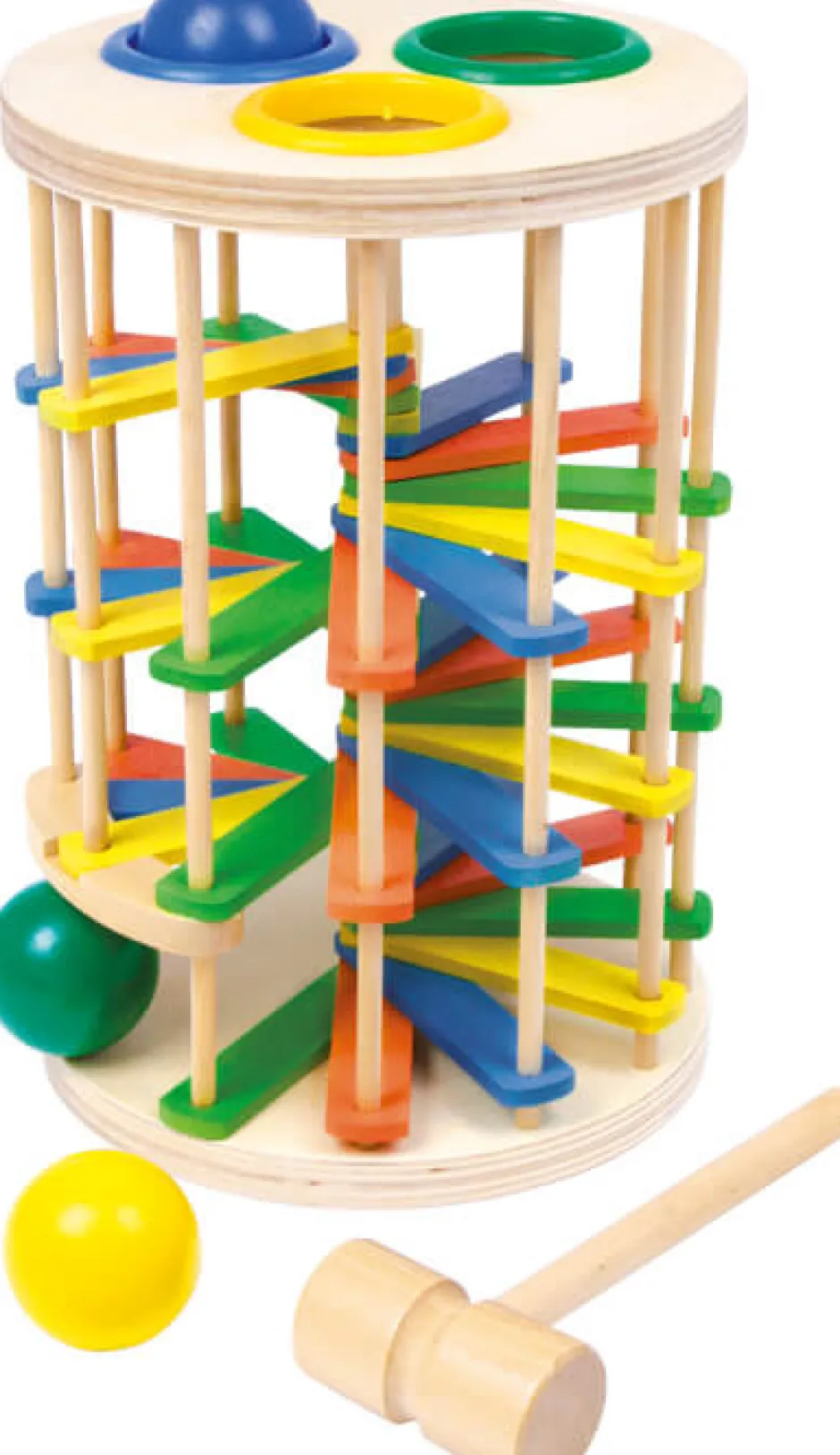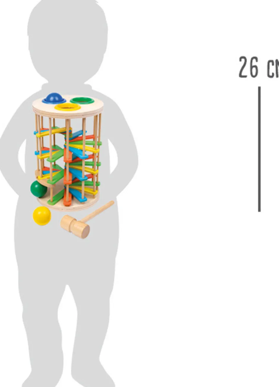 Sjov og anderledes leg med hammer og trækugler Slå til trækuglen, så den triller hele vejen ned af vindeltrappen
