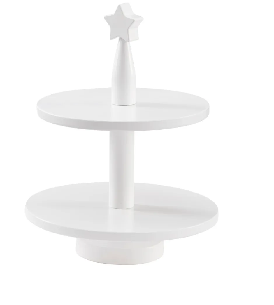 Server en lækker portion kager på dette fine kagefad med en stjerne længst oppe.