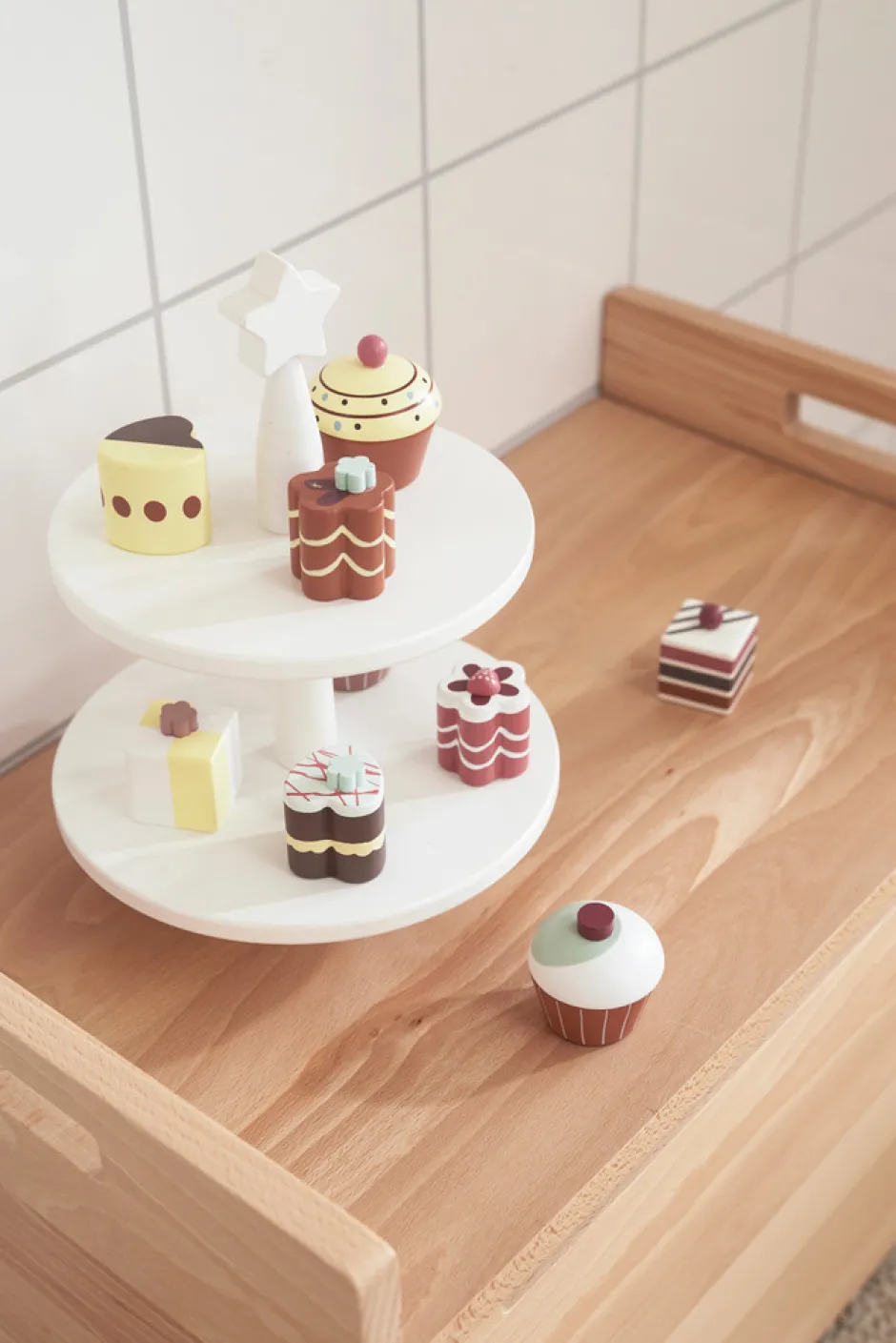 Lavet af træ og med et enkelt, stilrent design, gør at dette kagefad er det perfekte tilbehør til ethvert barns te-party eller legekøkken.