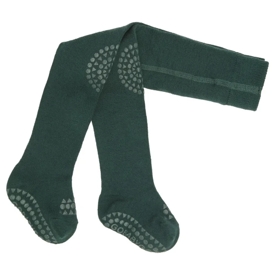 GoBabyGo kravle strømpebukser i superblød bambus viskose er det ideelle valg for små, aktive børn. Disse innovative strømpebukser er designet med specialudviklede gummidutter på knæ, under fødderne og på tæerne, hvilket sikrer ekstra stabilitet og skridsikkerhed, når dit barn begynder at kravle eller tage sine første skridt.