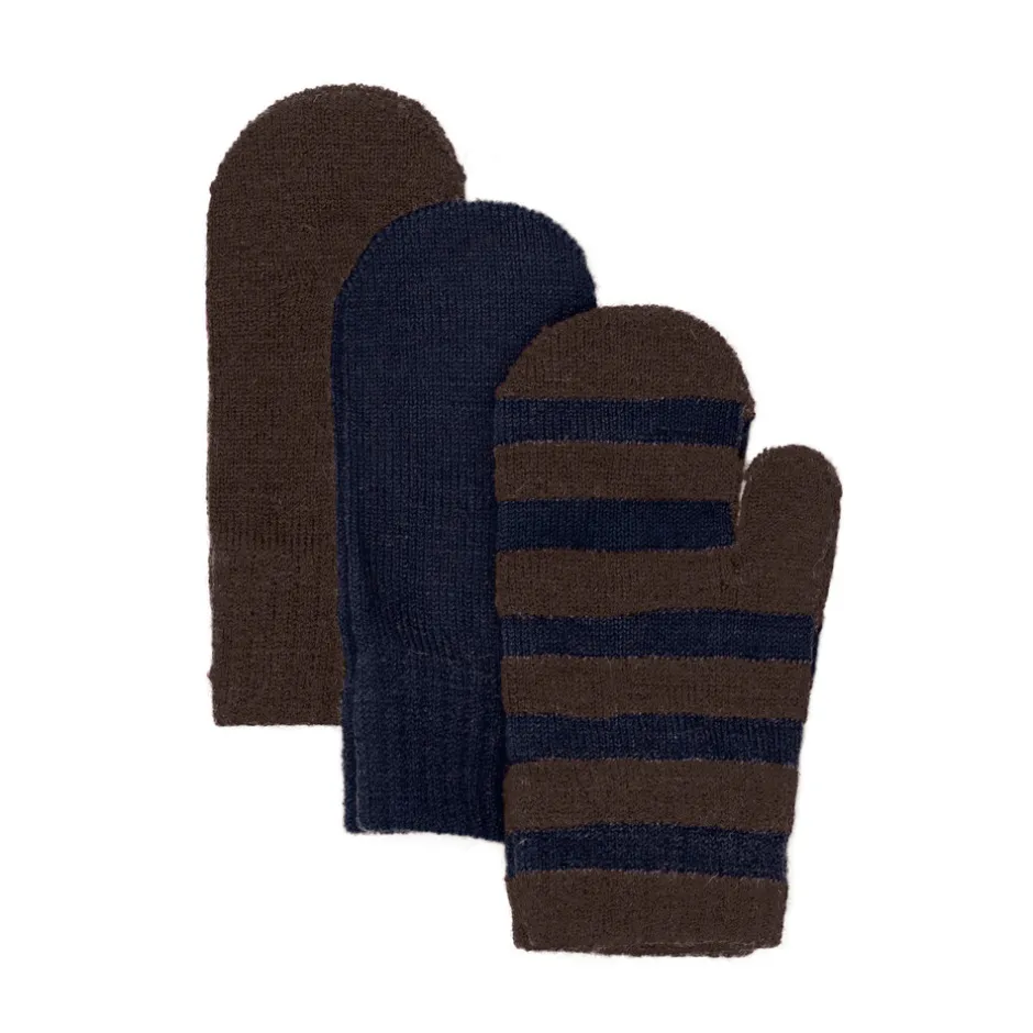 3-pak strikkede luffer i en blød og behagelig uldblanding, der sikrer varme og komfort til de kølige dage.