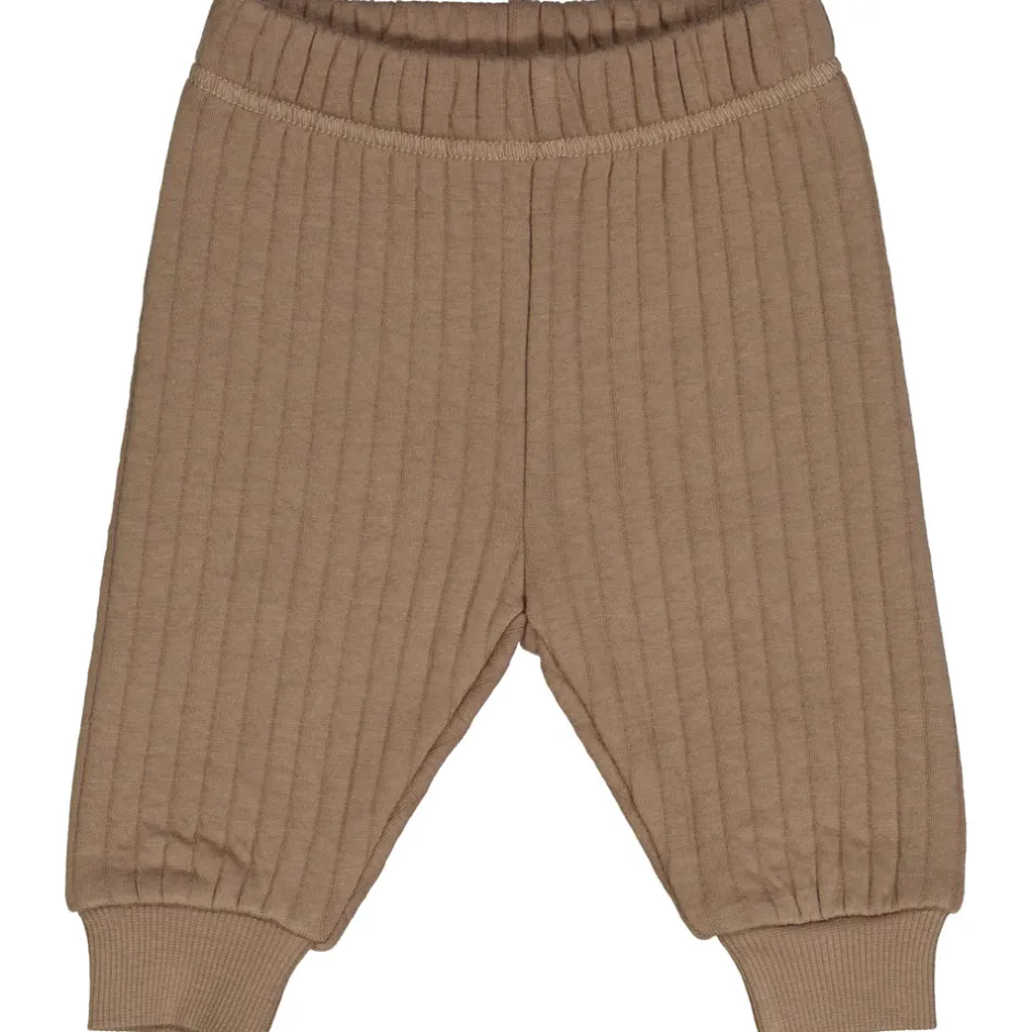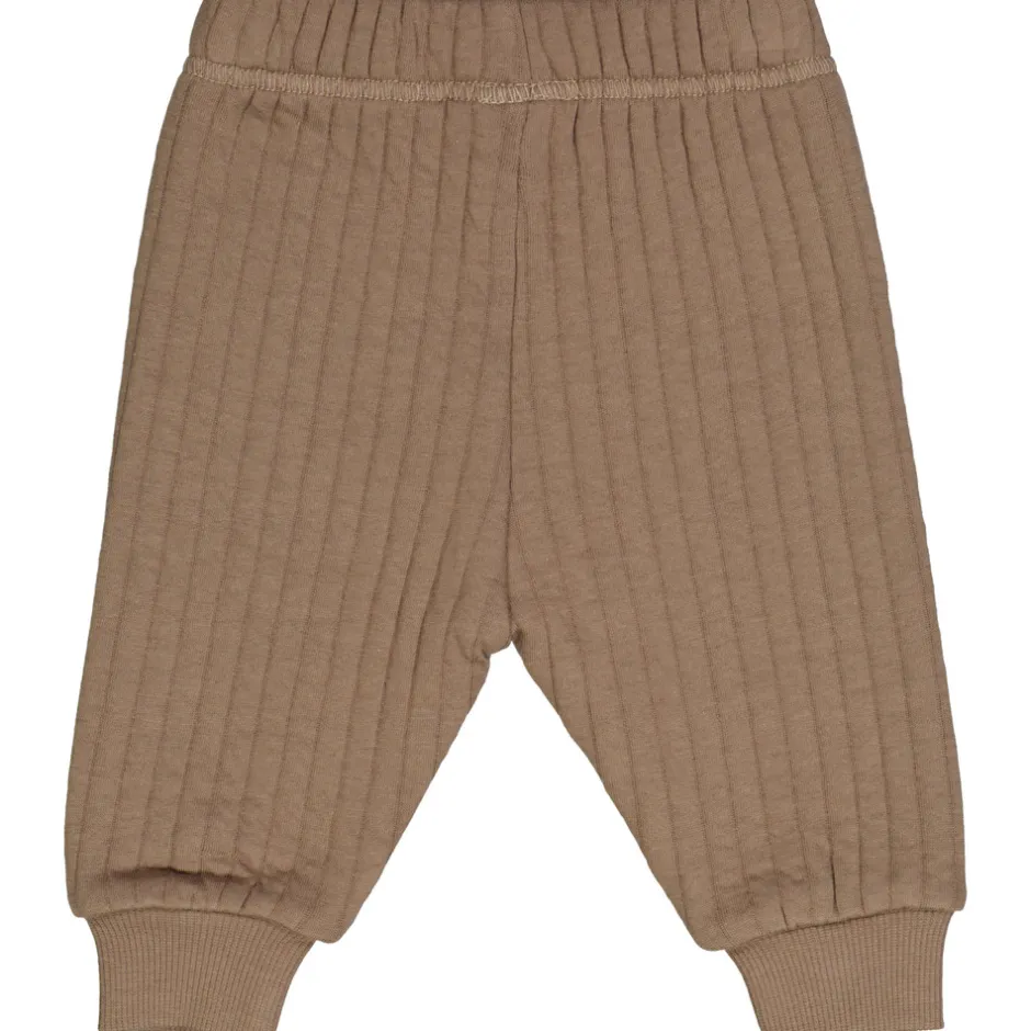 Skønne bløde bukser i quiltet bomuld. Bukserne har elastik i taljen. Bukserne er lavet fra str. 44 -74 og passer derfor meget små babyer. Fremstillet af 100 % blød bomulds-quilt (GOTS Organic Certified by Ecocert Greenlife Lic. No. 152033). Produktet er GOTS organic- certificeret, hvilket betyder at bomulden er certificeret økologisk, og at der i alle andre processer som farvning, strikning og syning er taget de strengeste hensyn til miljøet. GOTS er internationalt anerkendt som den førende standard for forarbejdning af tekstiler af økologisk bomuld. Derudover tages der også hensyn til arbejdsforholdene, hos dem der producerer tøjet. Økologisk bomuld 100%