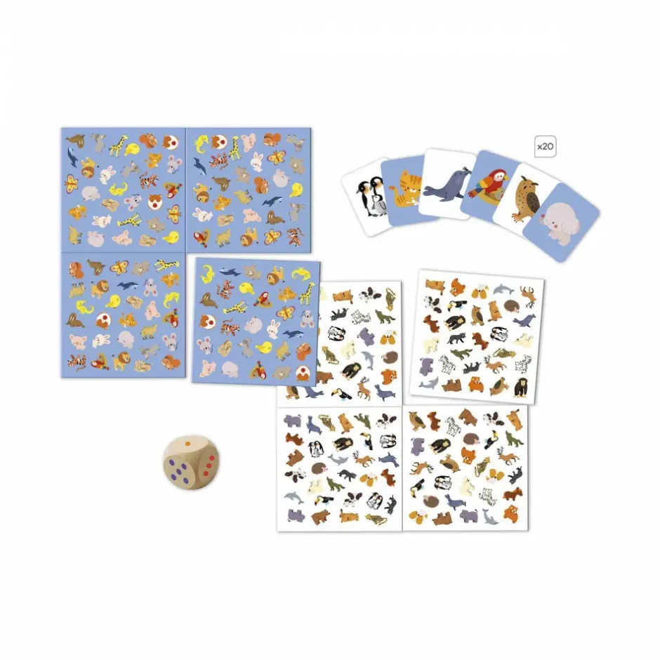 En særlig funktion ved dette søge- og findespil er det dobbeltsidede spillebræt: en hvid side og en grøn side, som består af 4 aftagelige dele, der kan justere sværhedsgraden. De 20 medfølgende dobbeltsidede kort fungerer på samme måde som brættet. I alt indeholder dette observationsspil: 1 dobbeltsidet spillebræt i 4 dele, 20 dobbeltsidede kort og 1 træterning.