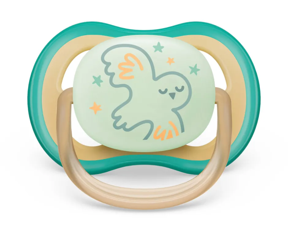 Philips Avent ultra air nat har ekstra store huller til at holde huden tør og en lys-i-mørke-knap, så både du og din elskede kan se og finde den, selv i mørke. Den symmetriske suttehoved respekterer den naturlige form af din babys gane, tænder og tandkød. Da Philips Avent spurgte mødre, hvordan deres små reagerer på deres teksturerede silikone suttehoveder, sagde i gennemsnit 98 %, at deres baby accepterer Philips Avent Ultra Air. 2 pak inkl. sterilisator boks til mikroovn. Ortodontisk og BPA-fri.