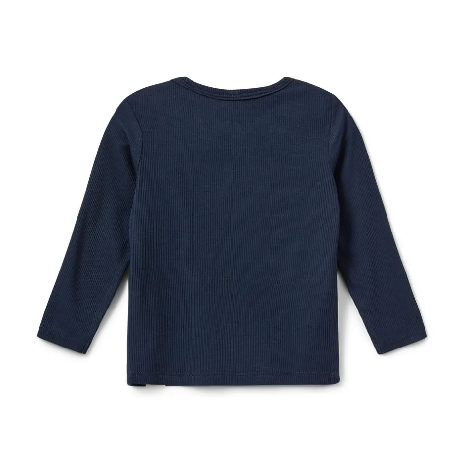 Lang ærmet rib bluse med knapluknig ved skulderen i den blødeste kvalitet.