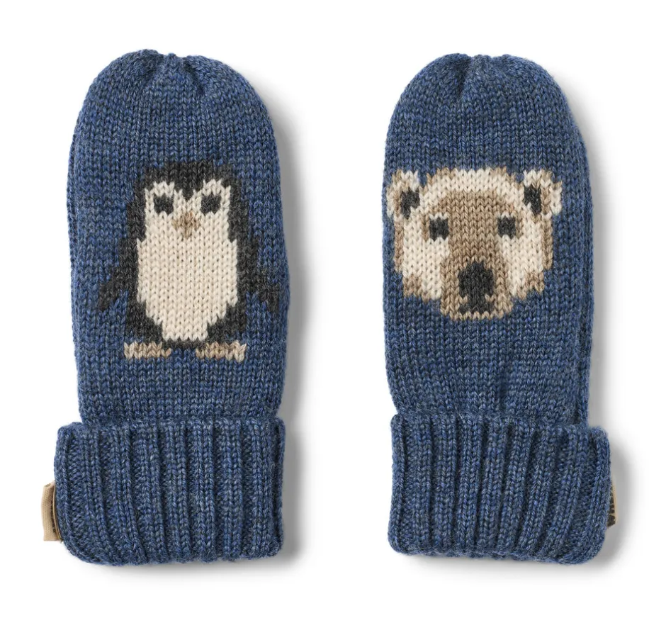 Unikke strikluffer i ekstra fint merinould til dit barn. Wheat’s strikluffer med jacquard mønster er designet til det lille barn, der har brug for ekstra varme på hænderne. Disse luffer tilføjer et strejf af sødme til dit barns outfit, da de har unikke motiver på hver luffe.