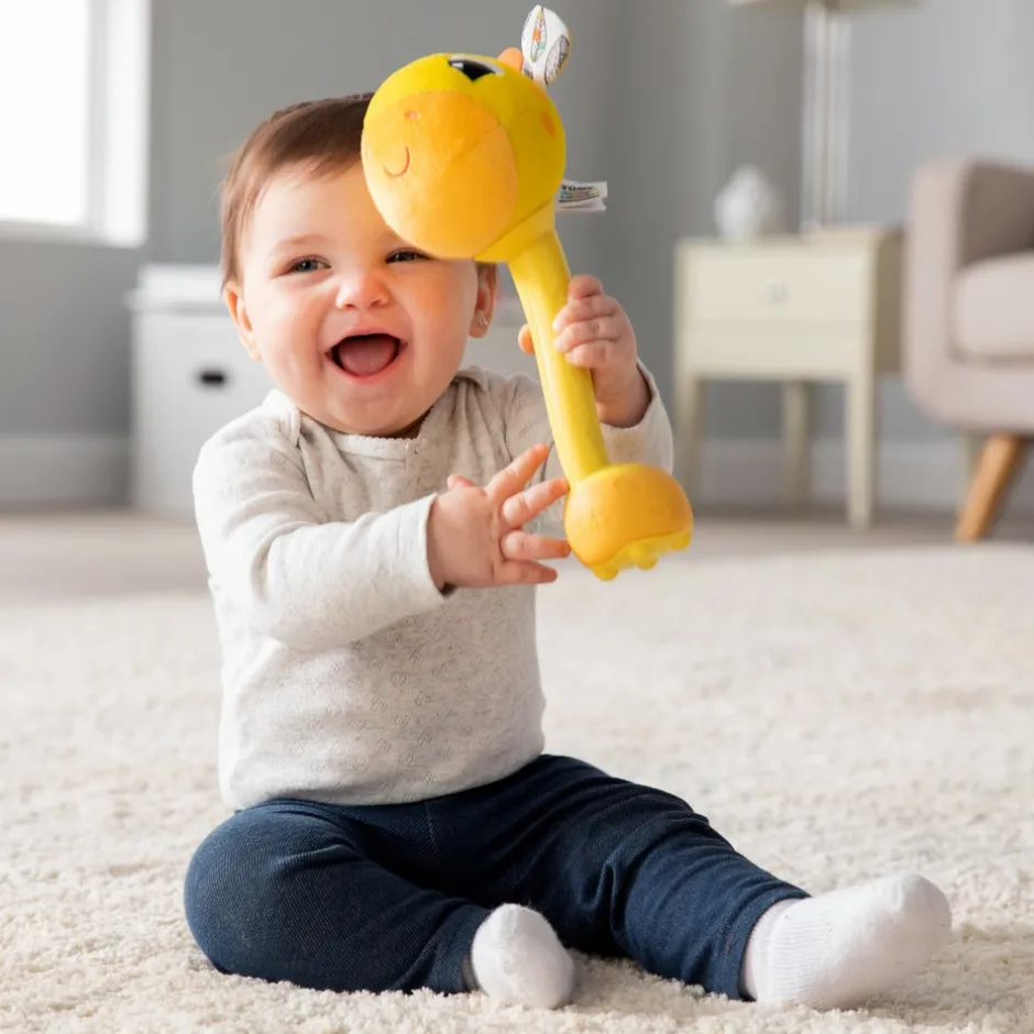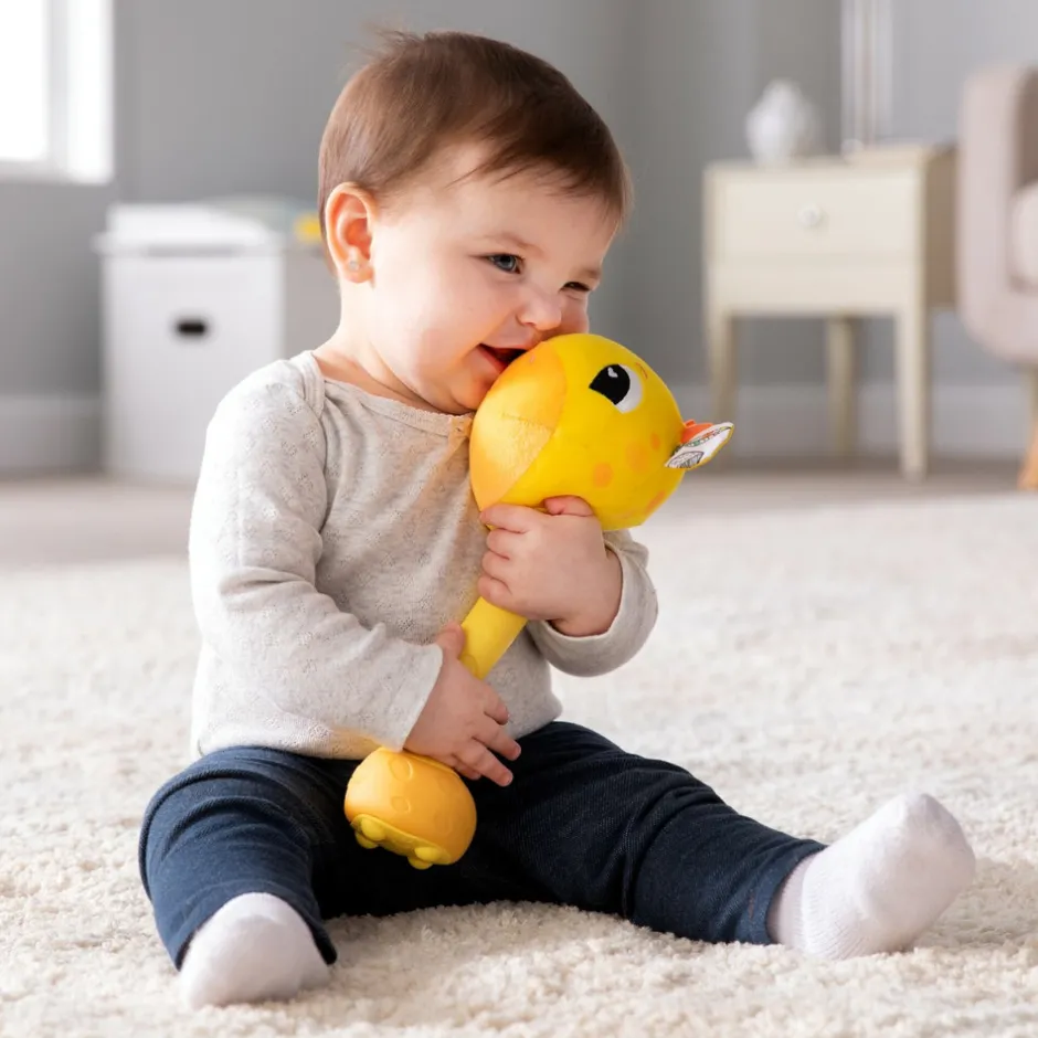 Giraffen laver sjove lyde når du slår med den bløde giraf. Du kan også slukke for lydene.