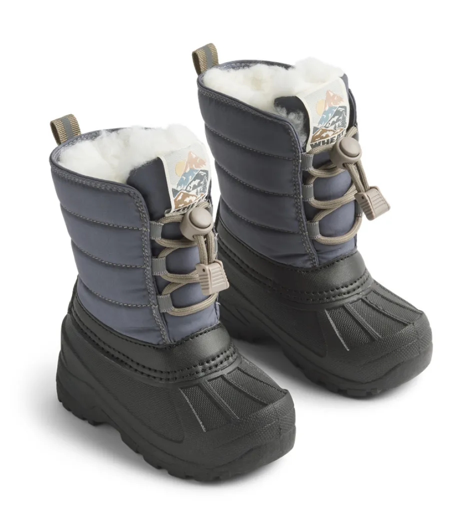 Cool og praktiske termovinterstøvler med snørelukning. Termo vinterstøvlerne er perfekte til den kolde efterårs- og vintersæson, da de har et behageligt og varmt uldfoer og er nemme for dit barn at tage på med en simpel lukning. For at holde de små fødder både varme og tørre har vi tilføjet en vandtæt gummisål, der går hele vejen op til overdelen.
