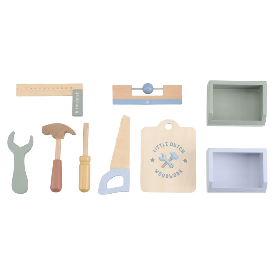 Se her små handymen og handywomen! Med denne robuste arbejdsbænk i træ kan børnene hamre, skrue og bygge, hvad de vil. Uanset om det er en sej bil eller deres egen kreative konstruktion – alt er muligt! Sættet indeholder forskellige værktøjer, f.eks. en rundsav, og opfordrer til rolleleg, motoriske færdigheder og kreativitet. Er du klar til at gå i gang?
