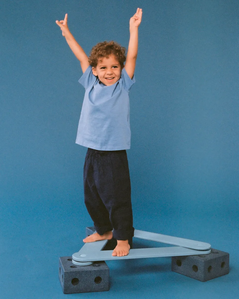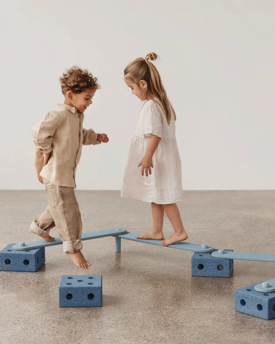 Byg. Balancér. Med dette sæt af bomme og klodser kan børn designe deres egne balancebaner og udfordre deres koordination og motorik med mindst 10 forskellige baner på forskellige niveauer — og flere at udforske! Balancebommene er lavet af birketræ og bejdset med naturlige linolier, hvilket giver et holdbart design, der passer ind i ethvert hjem. Med utallige måder at bygge på er dette sæt perfekt til at fremme fantasifuld leg og aktiv læring, og når balancebanen ikke er i brug, kan den bygges om til smarte møbler, som en hylde, en bænk eller endda et lille bord — et sjovt og funktionelt legetøj til børn fra 3 år og op!