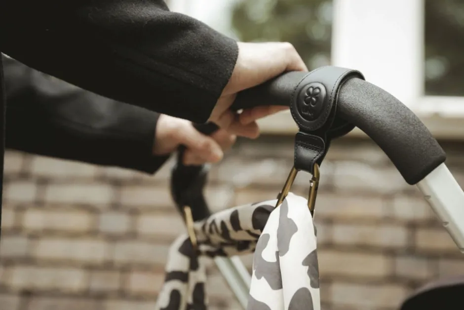 Specifikationer:Fremstillet af læder i høj kvalitetSikker velcrolukning.Universal pasform, der fungerer med alle barnevognsmodeller.Stilrent design.Krogene kan forblive fastmonteret, så de altid er klar til brug.