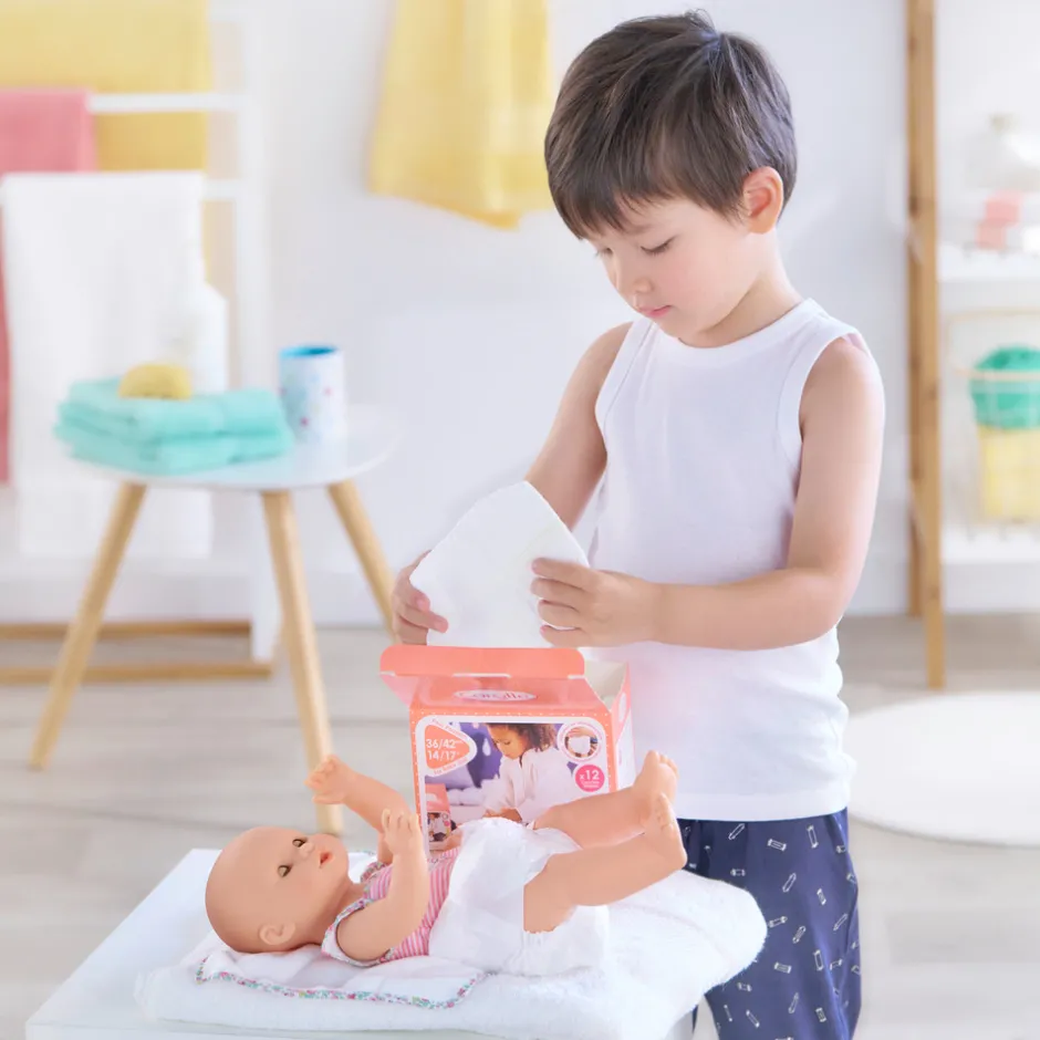 Disse realistiske babybleer er designet til at passe perfekt til dukker på 36-42 cm, hvilket gør legen endnu mere autentisk og sjov. Bleerne ligner rigtige babybleer og har en gul væske indikator, der bliver blå, når bleen er våd og skal skiftes. Dette tilføjer en ekstra dimension til legen og hjælper dit barn med at udvikle sine omsorgsevner.