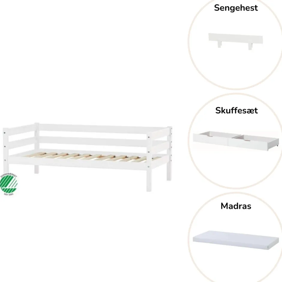 ECO Comfort juniorsengen fra Hoppekids er en sød og praktisk seng i størrelsen 70×160 cm. Den egner sig perfekt som en mellemstation mellem babysengen og voksensengen. Hoppekids laver mange senge og muligheder heriblandt denne enkle og flotte ECO Comfort juniorsengen. Med en madras størrelse på 70×160 cm. er denne juniorseng et godt valg når barnet skal ud af tremmesengen og videre til en større, men ikke er helt klar til en voksen størrelse seng. Sengen er en lille fin og hyggelig seng, som danner en tryg base for barnet gennem mange år, og sikre en dejlig natte søvn.