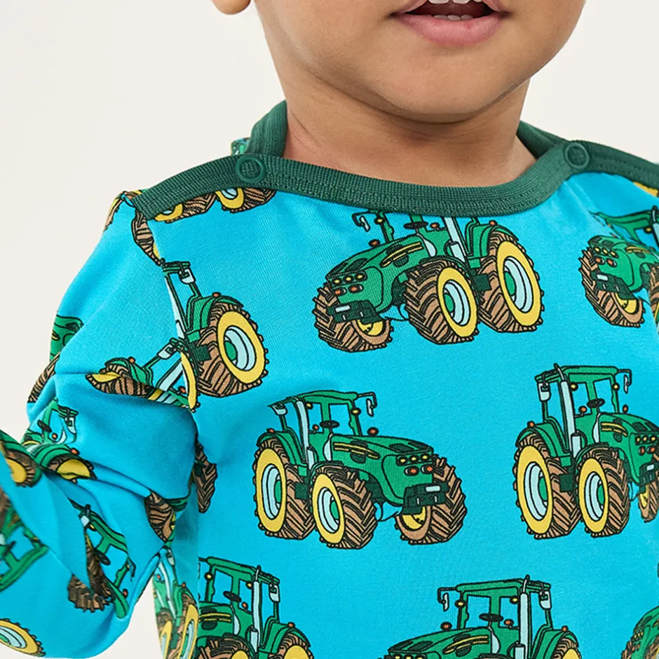 Det legende traktorprint tilføjer et strejf af spænding, perfekt til de små, der elsker sjove designs. Småfolks print er tegnet med fokus på glade farver, detaljer og historier. Vores bodyer er en god måde at tilføje personlighed til dit barns garderobe, samtidig med at dit barn kan føle sig komfortabel hele dagen.