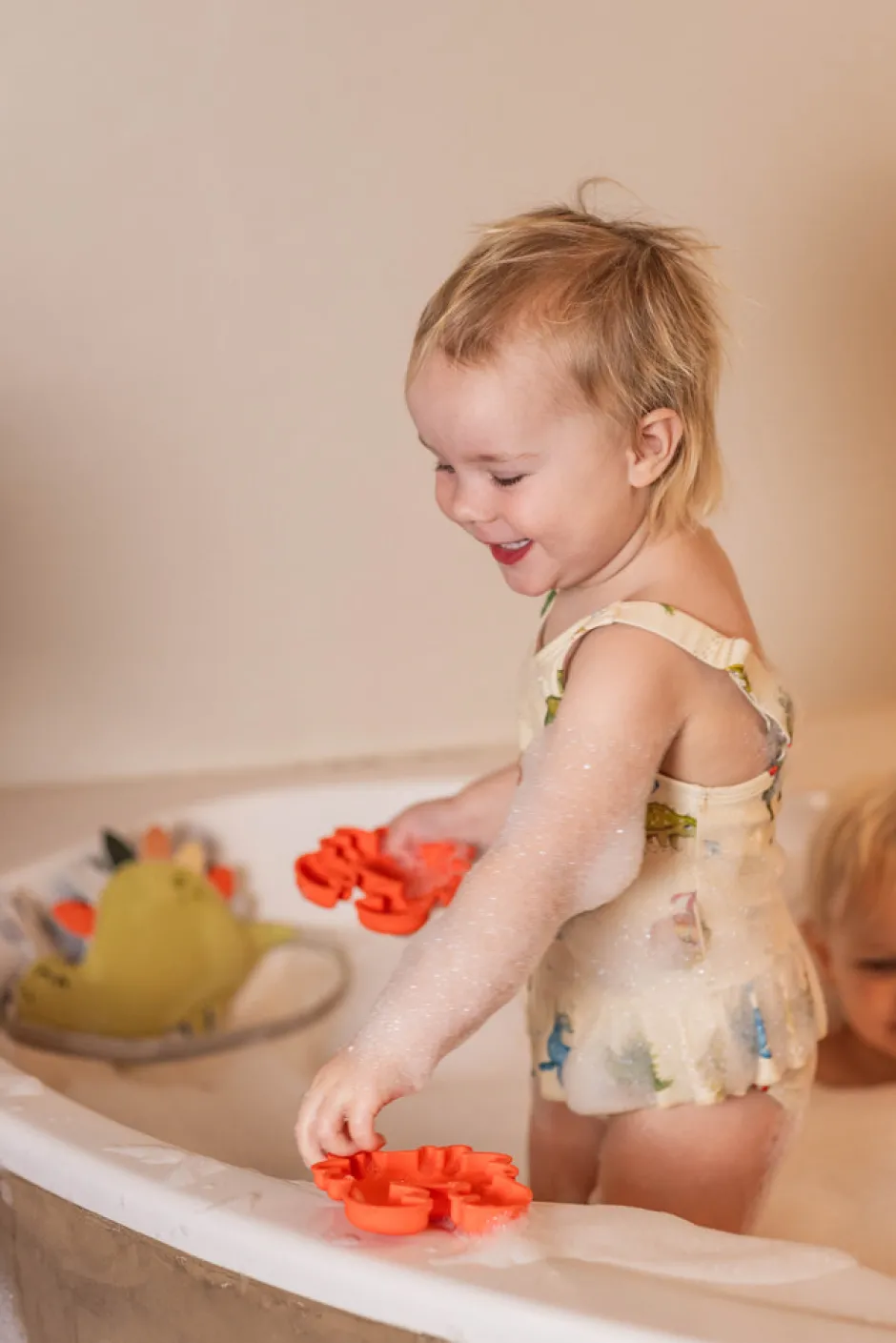 Med en vidunderlig badedragt til børn bliver dagen i svømmehallen, på stranden eller i haven endnu mere fantastisk! Den flotte badedragt med det klassiske snit, de brede justerbare skulderstropper og det elegante, lille flæseskørt giver UV50+ beskyttelse og er behagelig for barnet at have på. Badedragten begejstrer små og større børn med flotte, håndtegnede motiver.