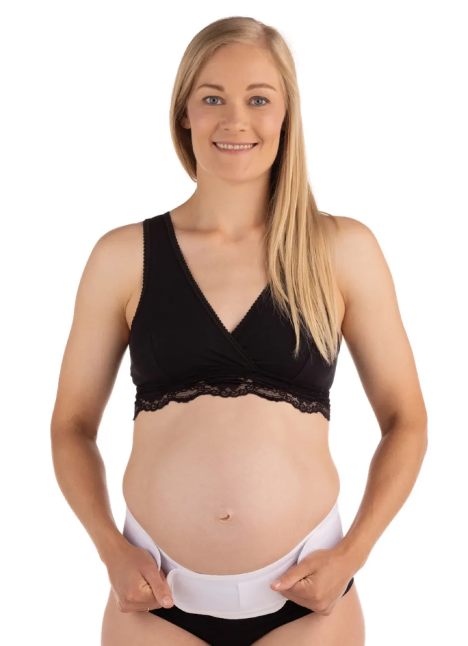Støtte: Det brede bløde bælte løfter din mave forsigtig, og letter presset mod underlivet.