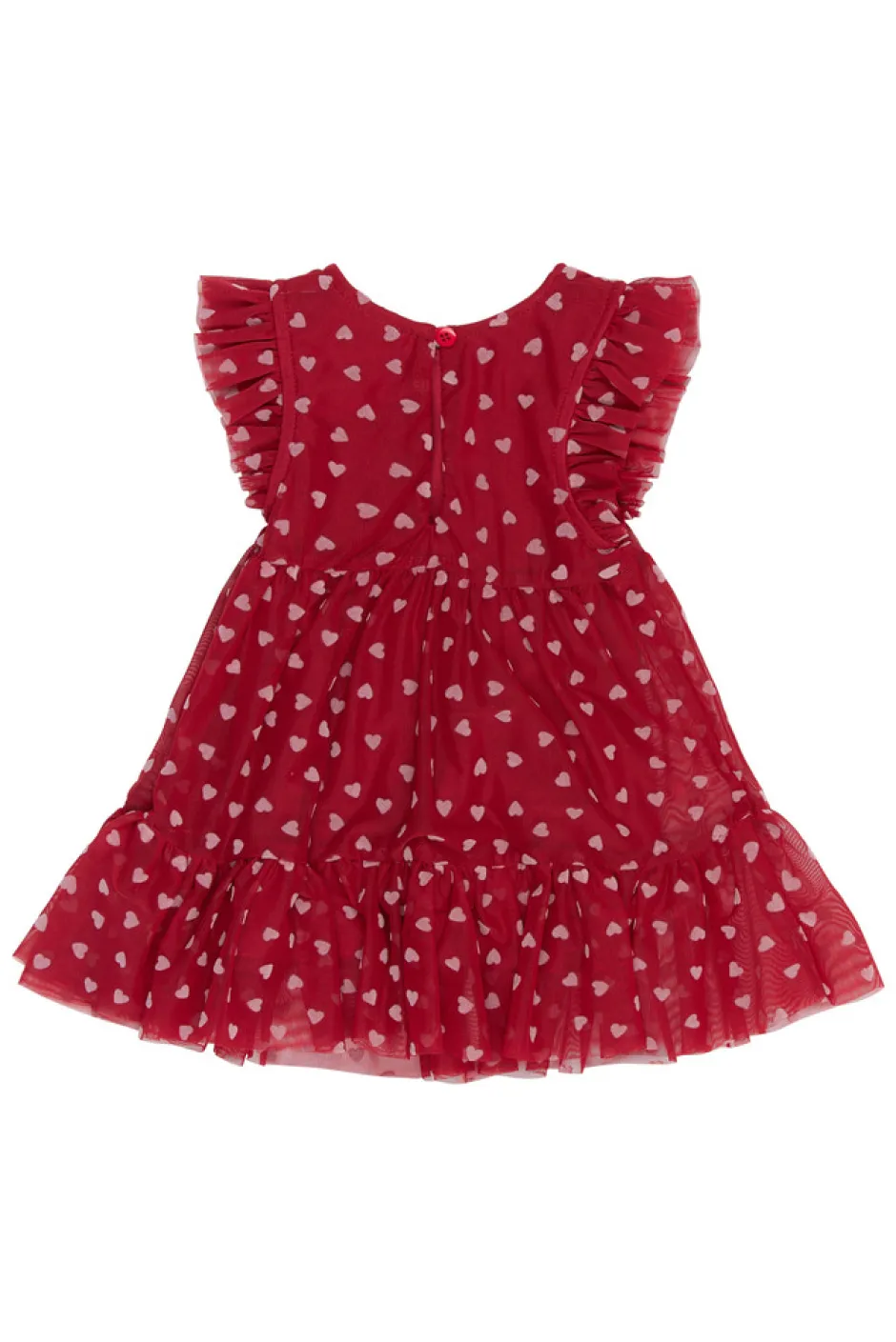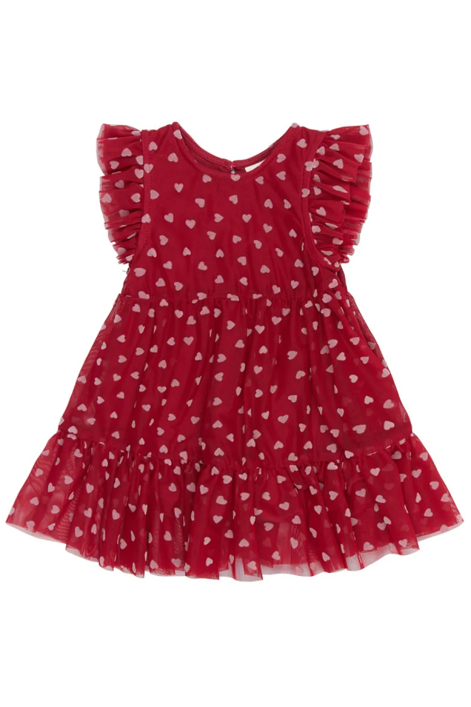 Denne kjole fra THE NEW Siblings er perfekt til festlige lejligheder med sit romantiske og legende design. Den er lavet af lagdelt tyl med et delikat all-over hjerteprint og har søde flæsedetaljer ved ærmer og forneden. Kjolen har en rund halsudskæring og en behagelig pasform med en forsigtigt udstrakt nederdel, der giver masser af luftigt bevægelsesfrihed og et luftigt look.