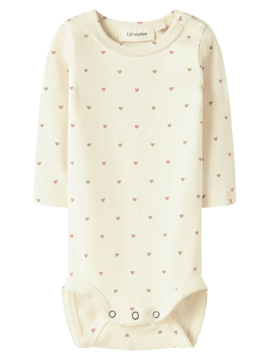 Lalo Tig Langærmet Body fra Lil’ Atelier er et skønt valg til de mindste, hvor komfort og funktionalitet går hånd i hånd. Den bløde bomuld sikrer, at dit barn kan bevæge sig frit og har det rart hele dagen. Det fine print med små hjerter giver et sødt og diskret udtryk, der passer til både hverdag og festlige lejligheder. Med trykknapper i bunden bliver bleskift nemt og hurtigt, og de lange ærmer sørger for, at dit barn holdes varm, selv på kølige dage. Den neutrale farve gør bodyen nem at kombinere med andre styles i garderoben.