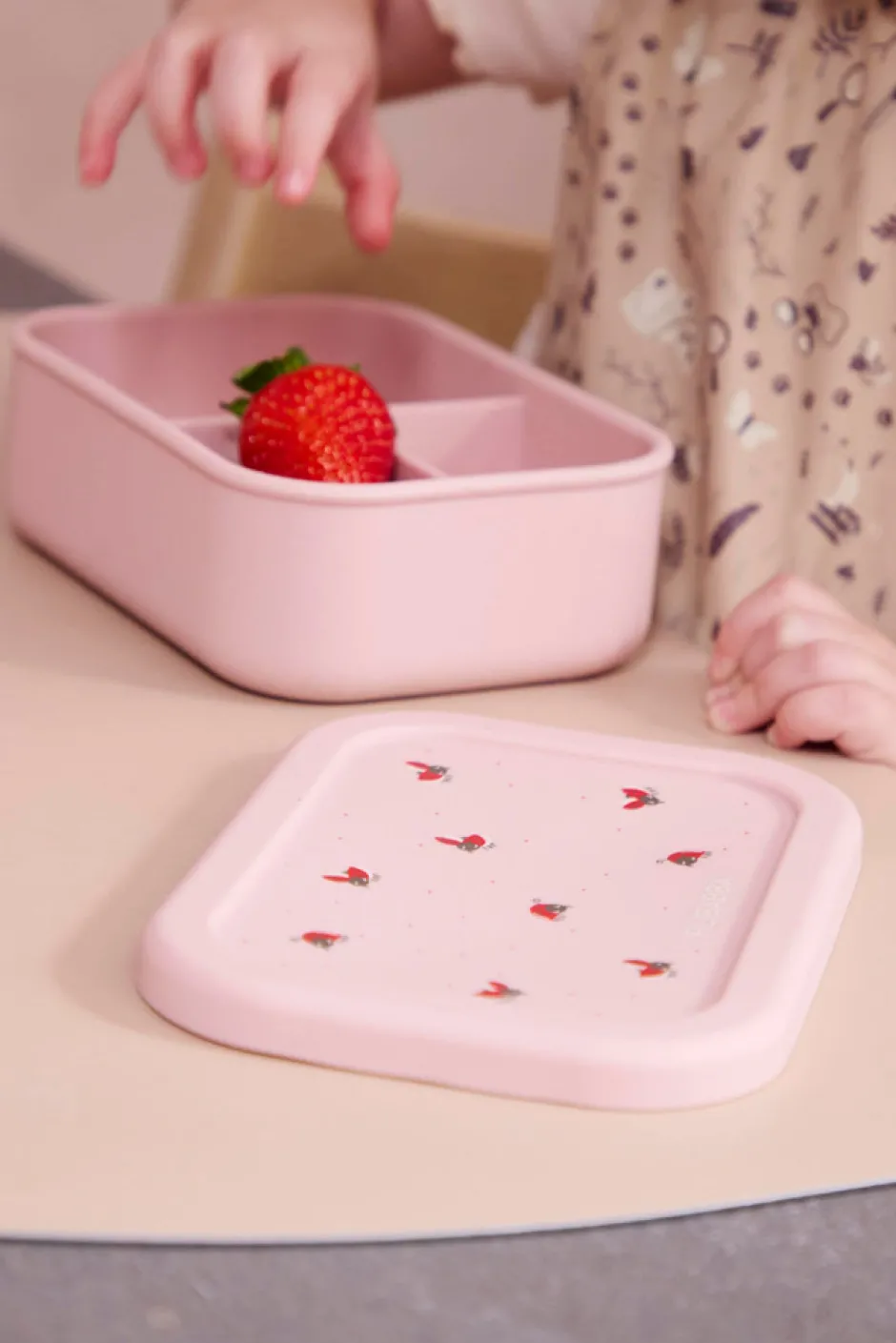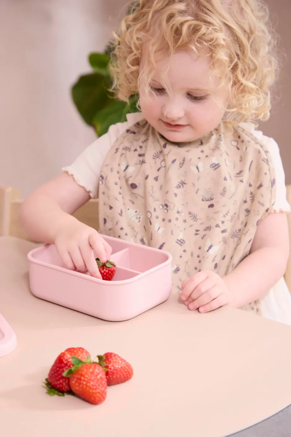 Sød og praktisk madkasse i 100% fødevaregodkendt silikone. Med sin størrelse på 700 ml er der masser af plads til snacks. Madkassen er opdelt i 3 mindre rum, så maden kan forblive adskilt, som mange børn foretrækker.