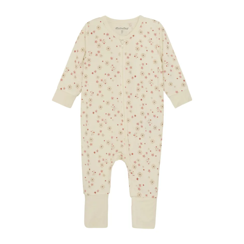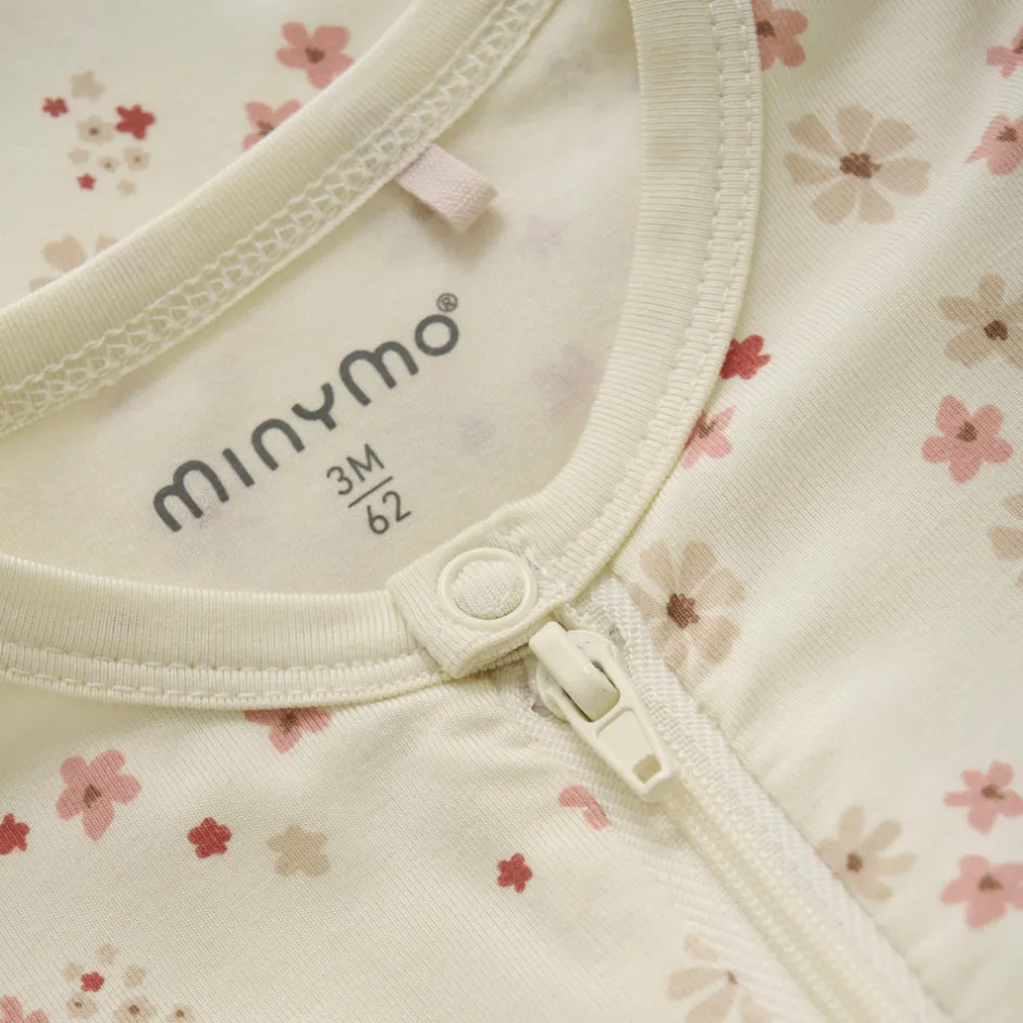 Natdragt fra MINYMO med all-over-print. Natdragten har lange ærmer og ben samt bred ribkant ved håndled og ankler. Ved anklerne kan ribkanten foldes ned. Natdragten er lavet i bambus og lukkes med lynlås fortil.