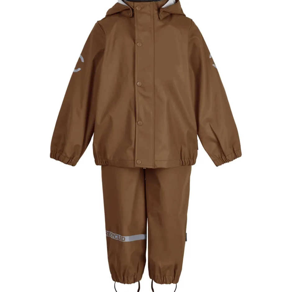 Klassisk PU regntøj uden seler fra mikk-line. Sættet består af en vandtæt regnjakke og regnbukser, der begge er lavet af 100% genanvendt og blødt PU-materiale. Regntøjet er skabt til at børn kan trodse regnen og have det sjovt med at hoppe i vandpytter, glide ned ad den våde rutsjebane, lege i den våde sandkasse osv. Placer de justerbare fodstropper under støvlerne, for at holde fødderne tørre og undgå at bukserne glider op. Buksernes taljeomkreds kan tilpasses efter behov, og så har sættet har et indvendigt navneskilt med plads til mere end ét navn, så giv det gerne videre, så endnu et barn kan få glæde af det.
