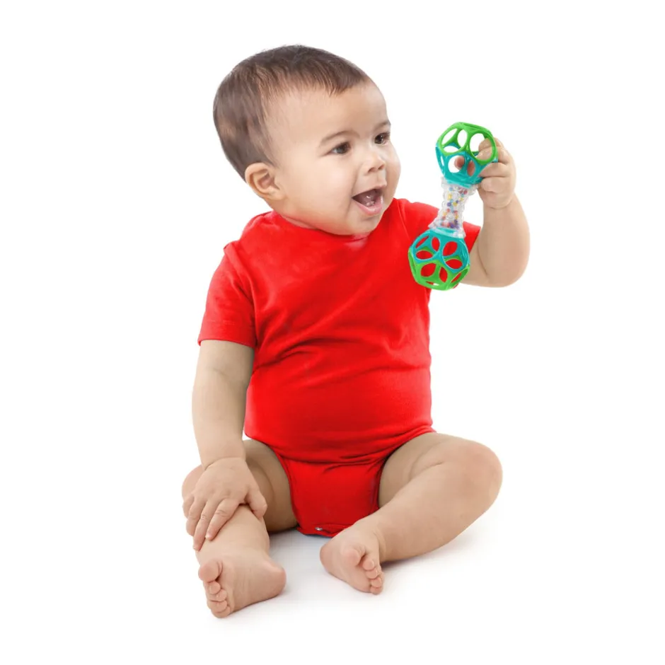 Ryst, ryst, ryst alt det du kan! Shaker™ legetøjet er lavet til de mindste fingre og er perfekt til babyens hænder at gribe om. Det gennemsigtige håndtag med forskellig struktur afslører farvestrålende perler, som barnet vil elske at høre rasle rundt. I hver ende er ranglen lavet af et fleksibelt, fast materiale, så din baby kan klemme det og lege med det i alle retninger. Shaker™ legetøjet er nemt for barnet at samle op – og for sjovt til at lægge det fra sig igen!