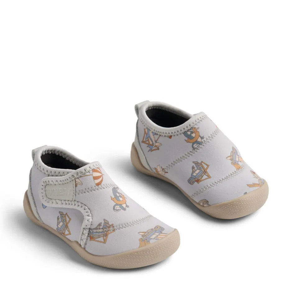 Denne strandsko er lavet i vores velkendte neopren med print, der matcher badetøjskollektion. Neoprenskoen er perfekt til en dag på stranden, ved poolen eller i svømmehallen og er behagelig for dit barn at have på og bevæge sig rundt i.