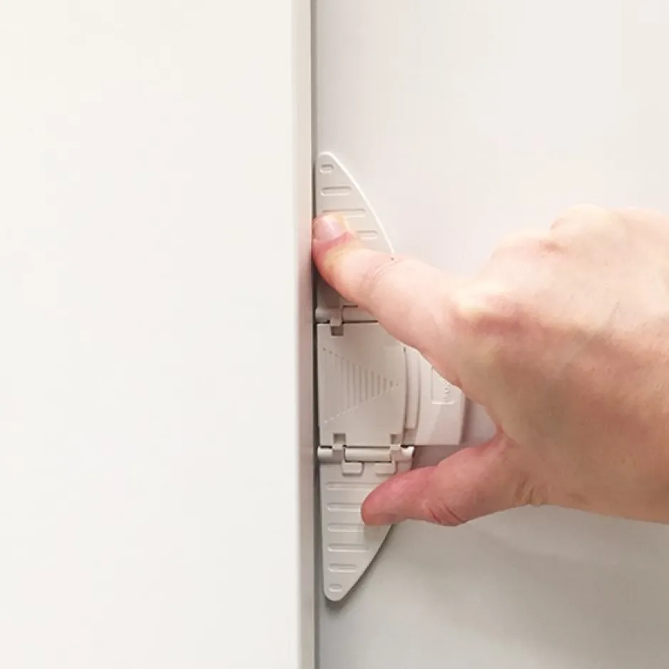 Skydedørslås. Sættes på skydedøre og forhindrer små børn adgang.
