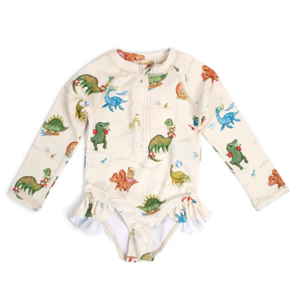 Med en charmerende UV-dragt til børn bliver sommerdagene i svømmehallen, på stranden eller i haven endnu mere fantastiske! Den fine dragt med lange ærmer og det sødeste flæseskørt giver UV50+ beskyttelse og er behagelig for barnet at have på. UV-dragterne begejstrer små og større børn med flotte, håndtegnede motiver.