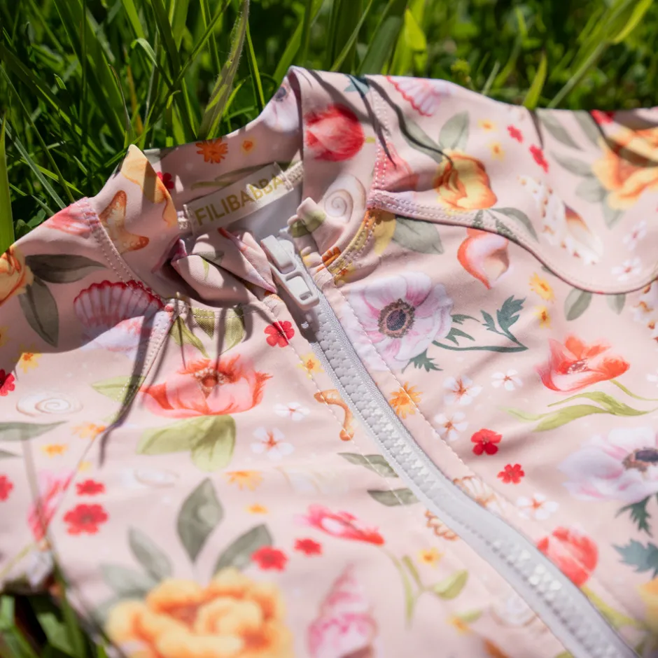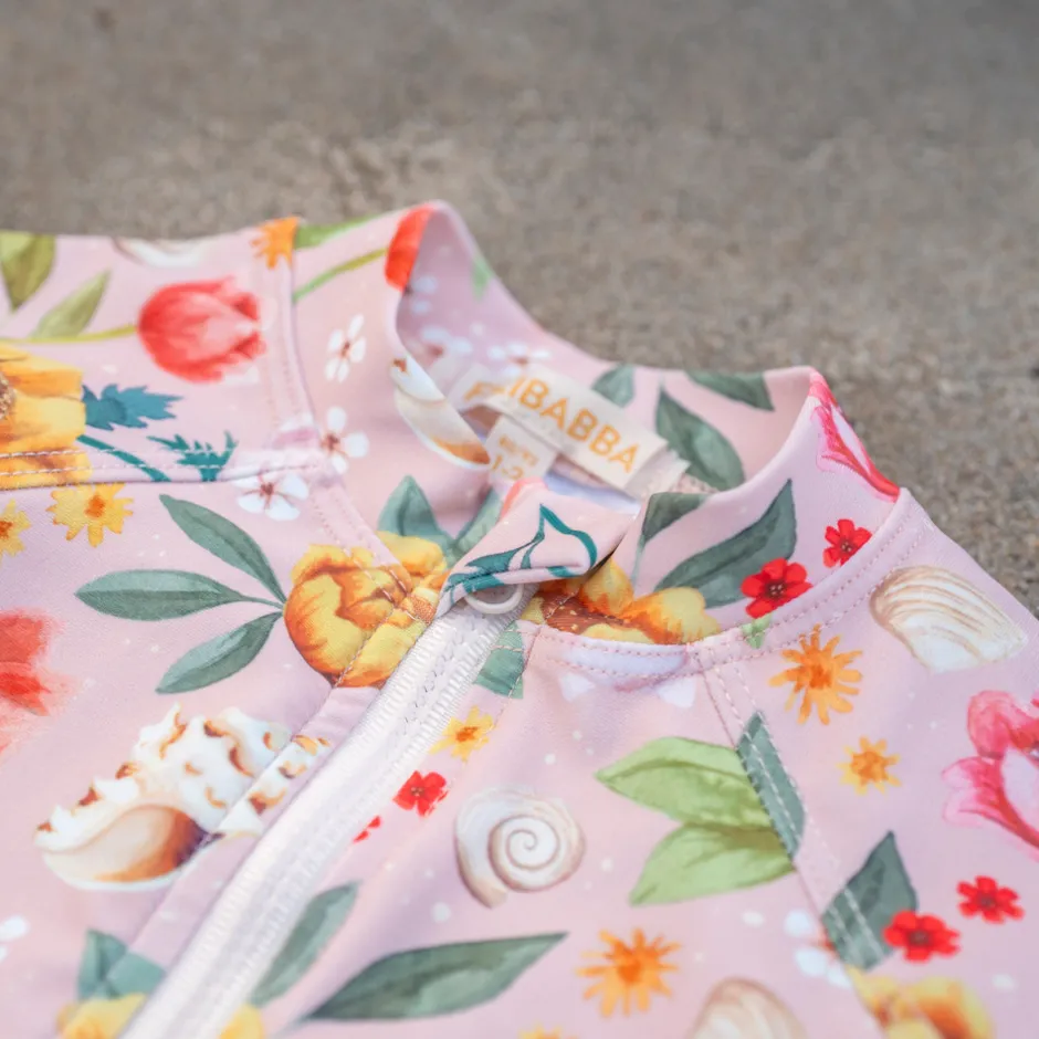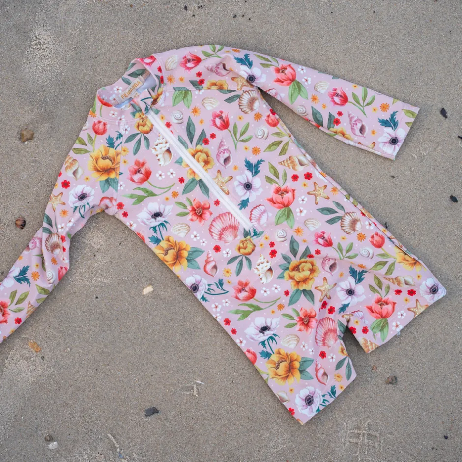 Bemærk hvordan “Ocean Blossom”-printet fanger de skatte, som børn elsker at samle og tage med hjem. Hvert blomsterblad og hver lille detalje er håndtegnet med bløde penselstrøg i akvarel, hvilket forvandler hvert blik til en fortryllende opdagelsesrejse.