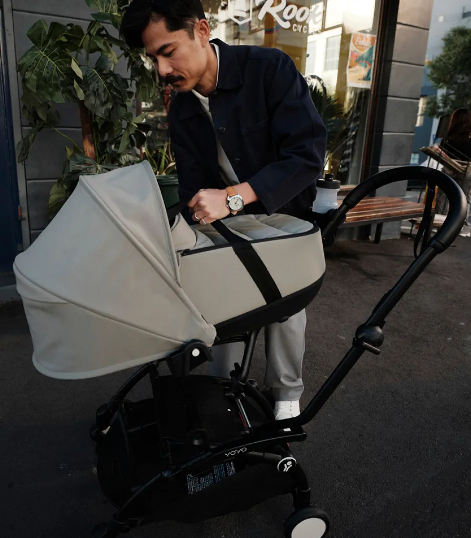 Liggedelen giver dig mulighed for at bruge klapvognen (tilkøb) fra fødslen. Dit barn vil hvile på en åndbar, ekstra hyggelig dobbeltmadras. YOYO liggedelen klikkes fast på YOYO³ stellet med et enkelt klik. Takket være det lette design kan den aftagelige liggedel nemt bæres i hånden, stilles på gulvet og sættes tilbage på klapvognen, når du går tur.