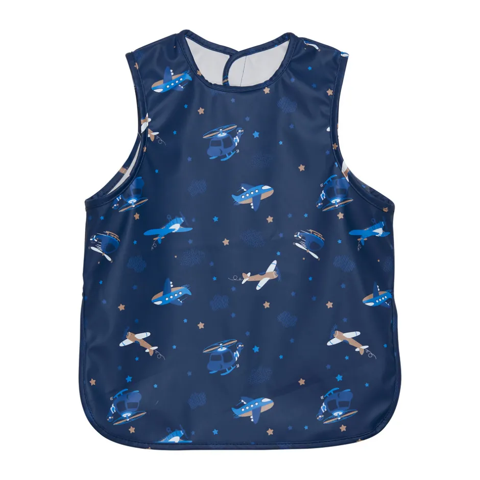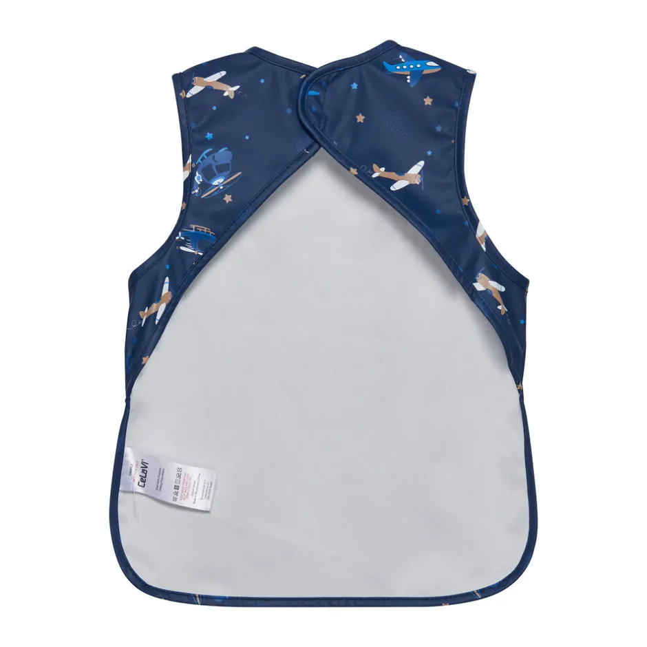 Praktisk all-over print PU spiseforklæde fra CELAVI. Fremstillet i delvist recycled materiale. Materialet er vandtæt, så den beskytter tøjet mod mad og drikke under spisning. Den har lange ærmer med elastik som afslutning og har opsamlingslomme foran. Lukkes i nakken med velcro, så den nemt kommer af og på.
