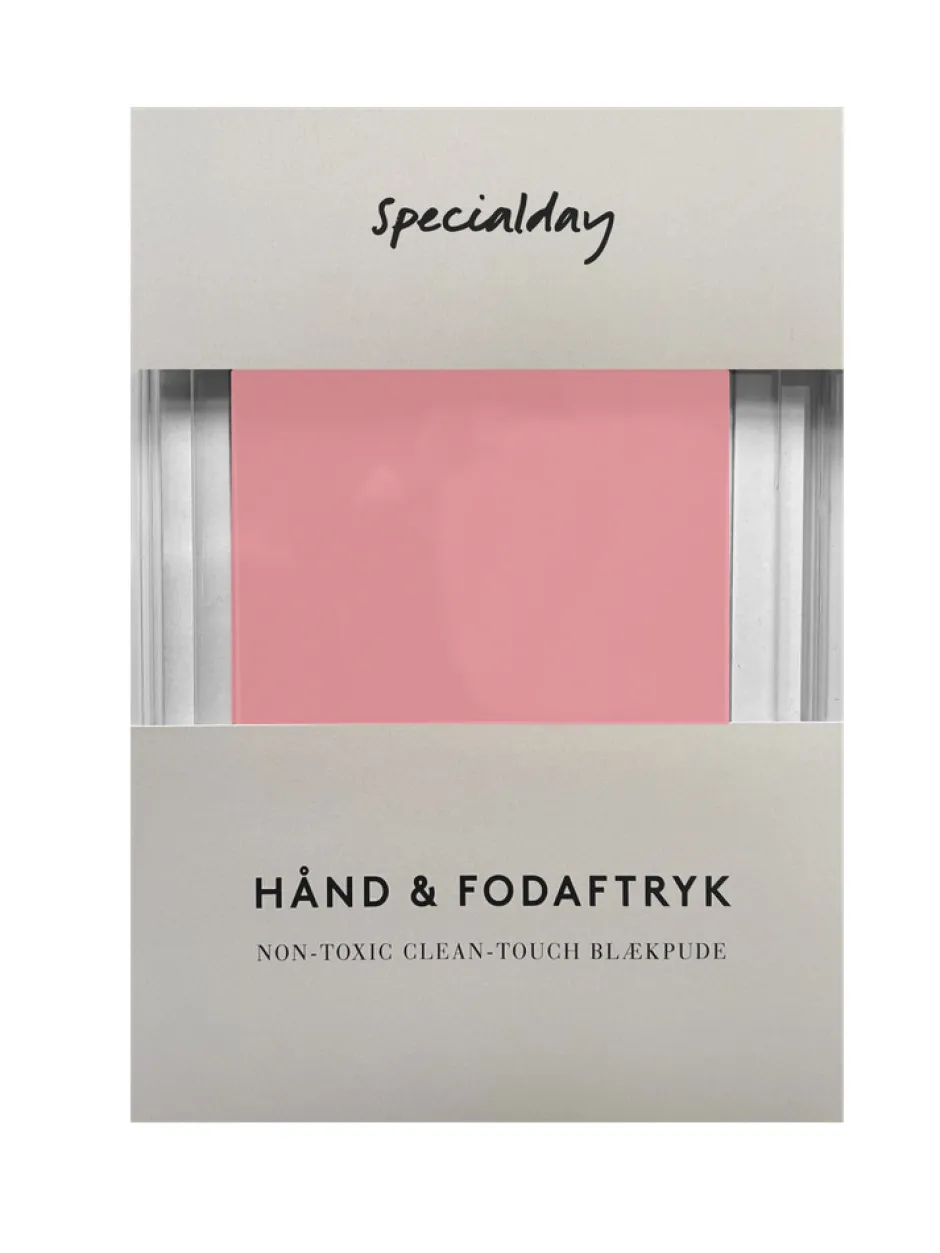 Hånd- og fodaftryk til baby og små børn i fine farver der passer til siderne i barnets bog fra Specialday. Non-toxic clean-touch blækpude