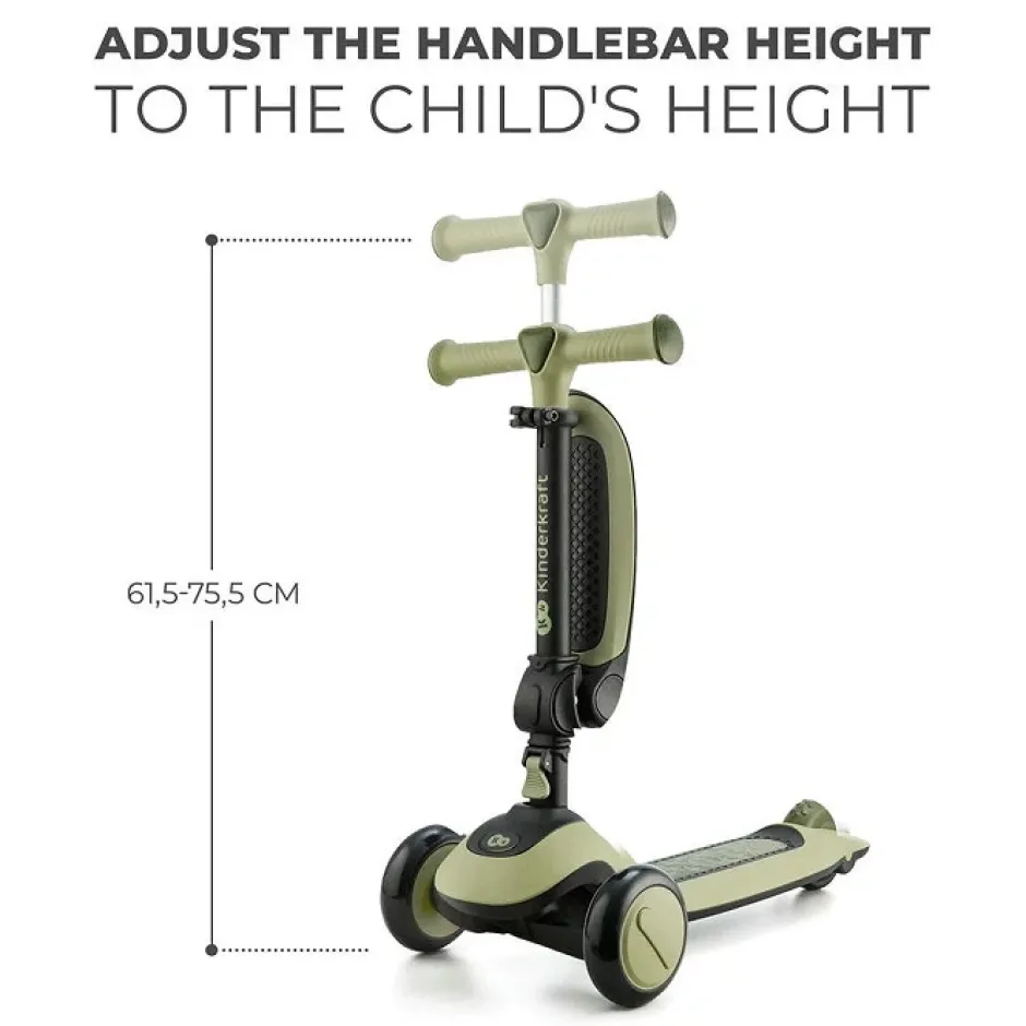 Sænkning af sædet og justering af styret tager kun et øjeblik. Takket være dette kan du omdanne cyklen til løbehjul og omvendt, selv under gåtur.