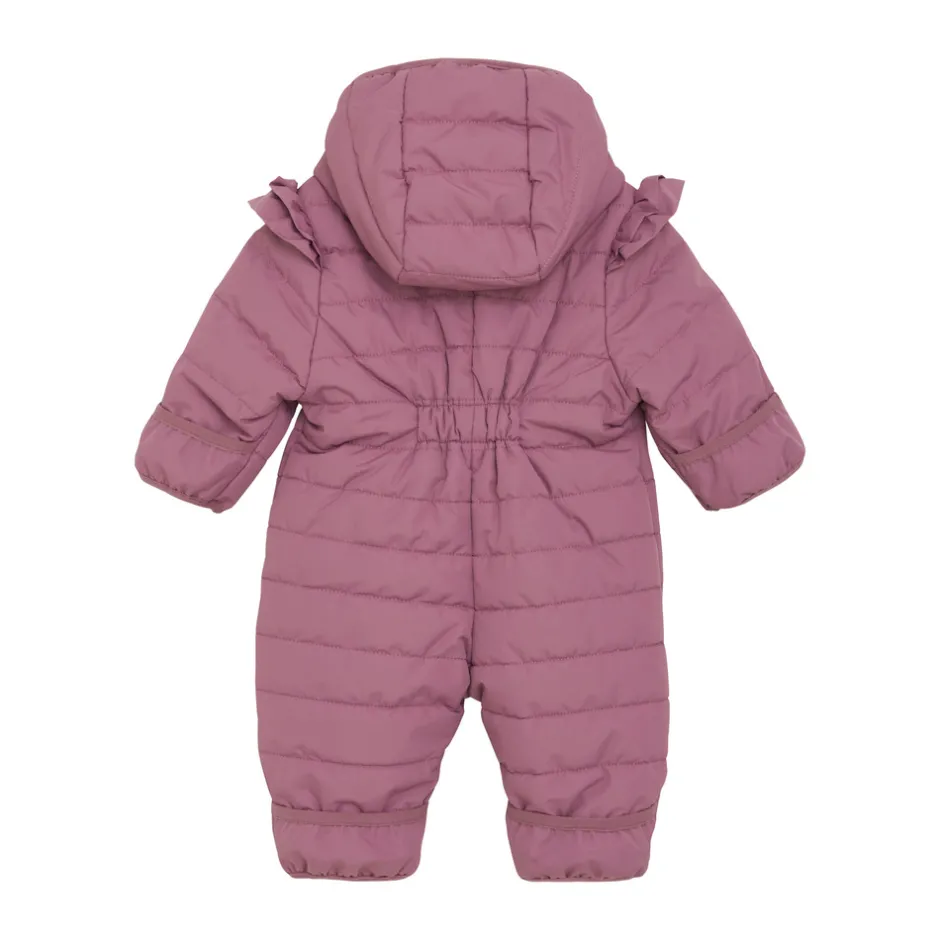Dragten er udstyret med to lynlåse, der går fra midten og ned i hvert ben, hvilket gør den nem at tage af og på. Den har en fast hætte samt foldbare fødder og luffer, som giver ekstra varme og fleksibilitet til de mindste. Der er vendbare luffer i alle størrelse, og futter vendbart op til størrelse 74