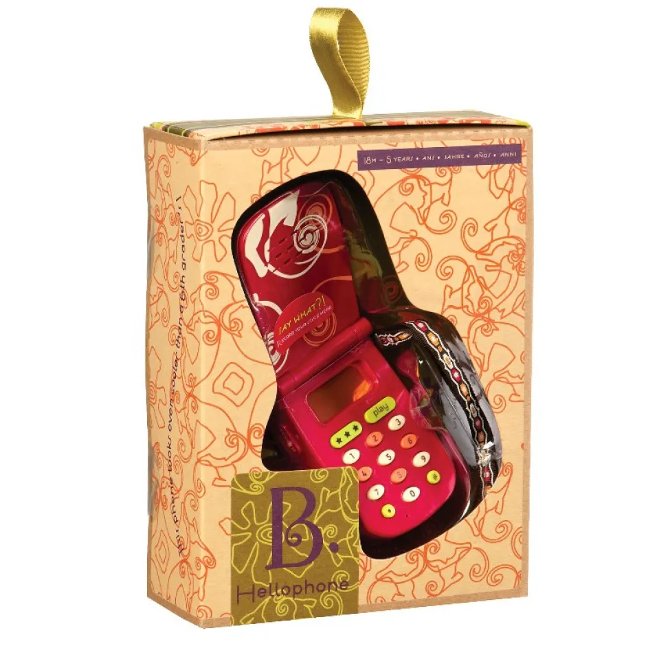 Denne telefon vil helt sikkert vække dit barns opmærksomhed! Den kan afspille lyde og sange og du kan indtale meddelelser på telefonen, som barnet kan finde. Demobatterier med begrænset levetid medfølger. B. er et helt nyt mærke i Danmark, der har vundet adskillige priser verden over. Inspireret af verden omkring dem skaber B. farverige og unikke kollektioner, som er lærerige, udforskende og finurlige og indbyder til opdagelse og leg. Selv emballagen er gennemtænkt, da den er genanvendelig og produceret i miljørigtigt materiale.