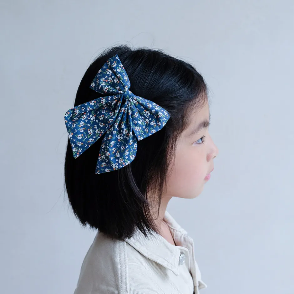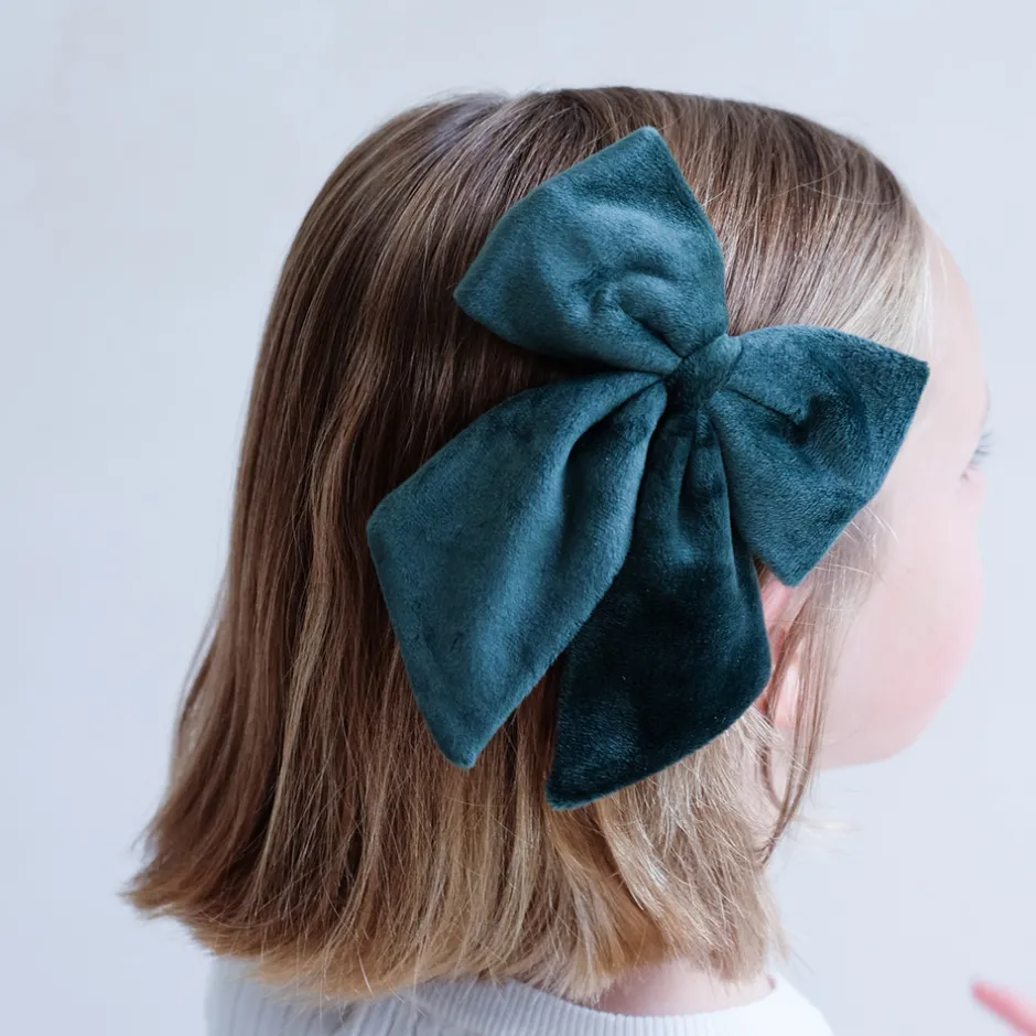 2 store hårclips med store blågrønne sløjfer.