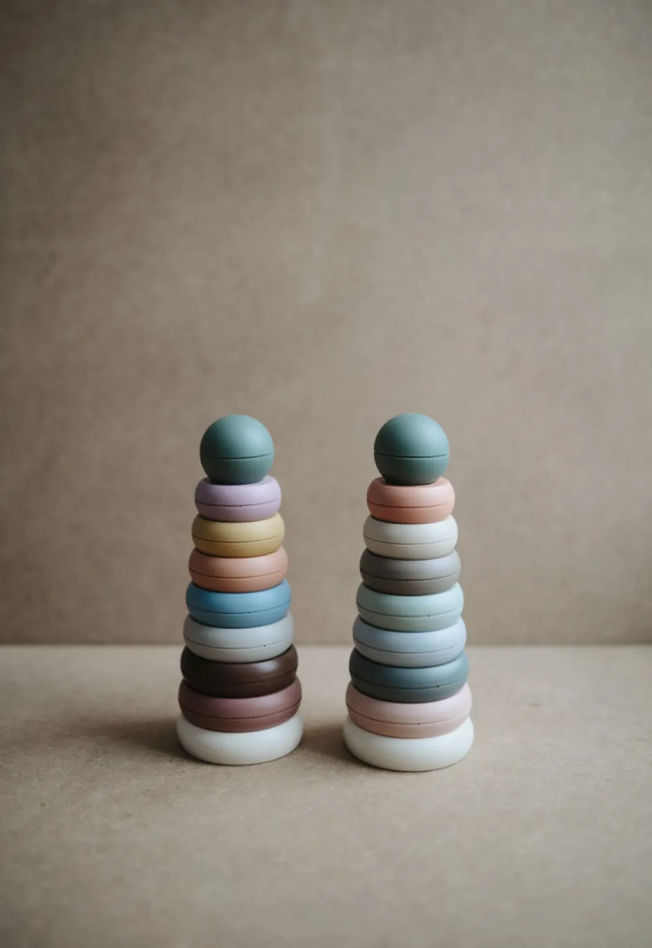 Mushies ringtårn kommer i skønne, afstemte farveskalaer, der passer perfekt til Mushies andre produkter.