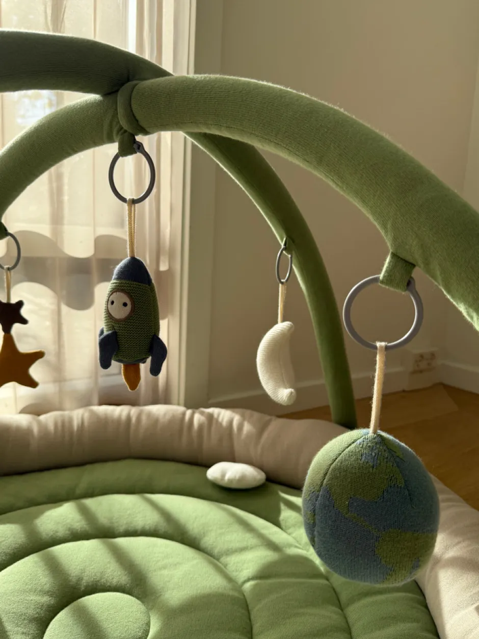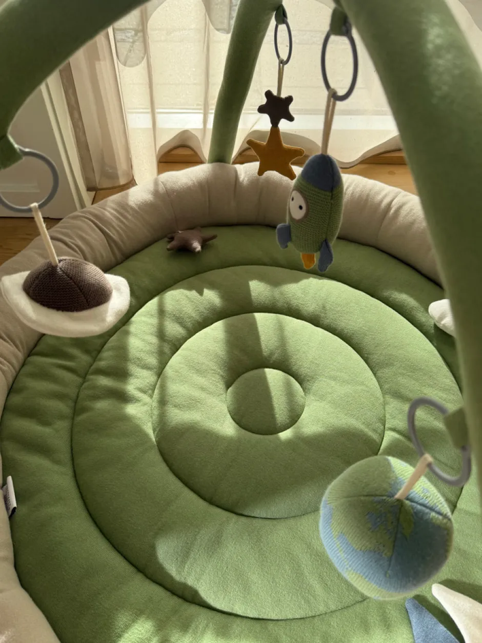 Aktivitetstæppe fra Vanilla Copenhagen der stimulerer dit barns sanser, kreativitet og udvikling på alle niveauer. Aktivitetstæppet er udstyret med blødt legetøj i forskellige højder, der opfordrer dit barn til at udforske og gribe fat i legetøjet. Dette hjælper med at udvikle deres motoriske færdigheder og hånd-øje-koordination på en sjov og interaktiv måde.