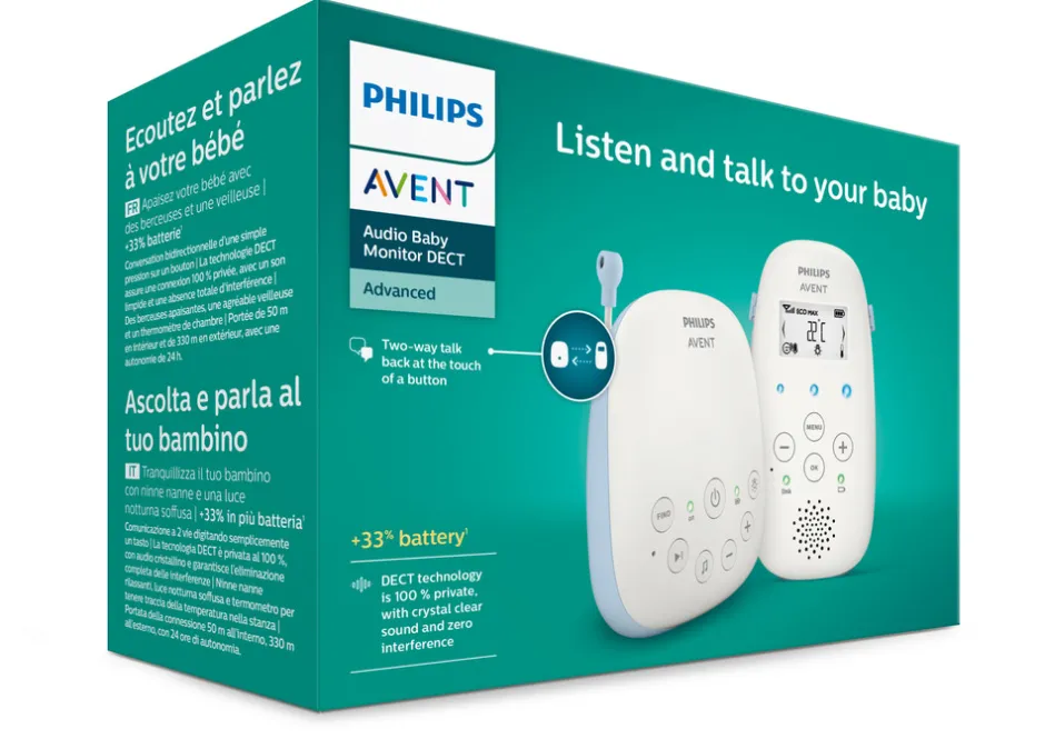 SCD715 babyalarm giver dig større fleksibilitet med op til 24 timers overvågning før genopladning og krystalklar lyd. Med temperatursensor, beroligende natlys og vuggeviser kan du give dit barn afslappende omgivelser.