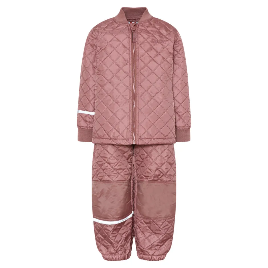 Til dage, hvor det er for varmt til vintertøj og for koldt i en tynd sommerjakke, er termotøj fra CeLaVi perfekt. Kan bruges alene eller indenunder regntøjet for at give lidt ekstra varme. Termotøjet er ikke vandtæt, men på knæ og bagdelen er der tilføjet et lag Oxford nylon, som er imprægneret med en gennemsigtig PU-coating på bagsiden, der gør disse udsatte områder mere slidstærke og vandafvisende.