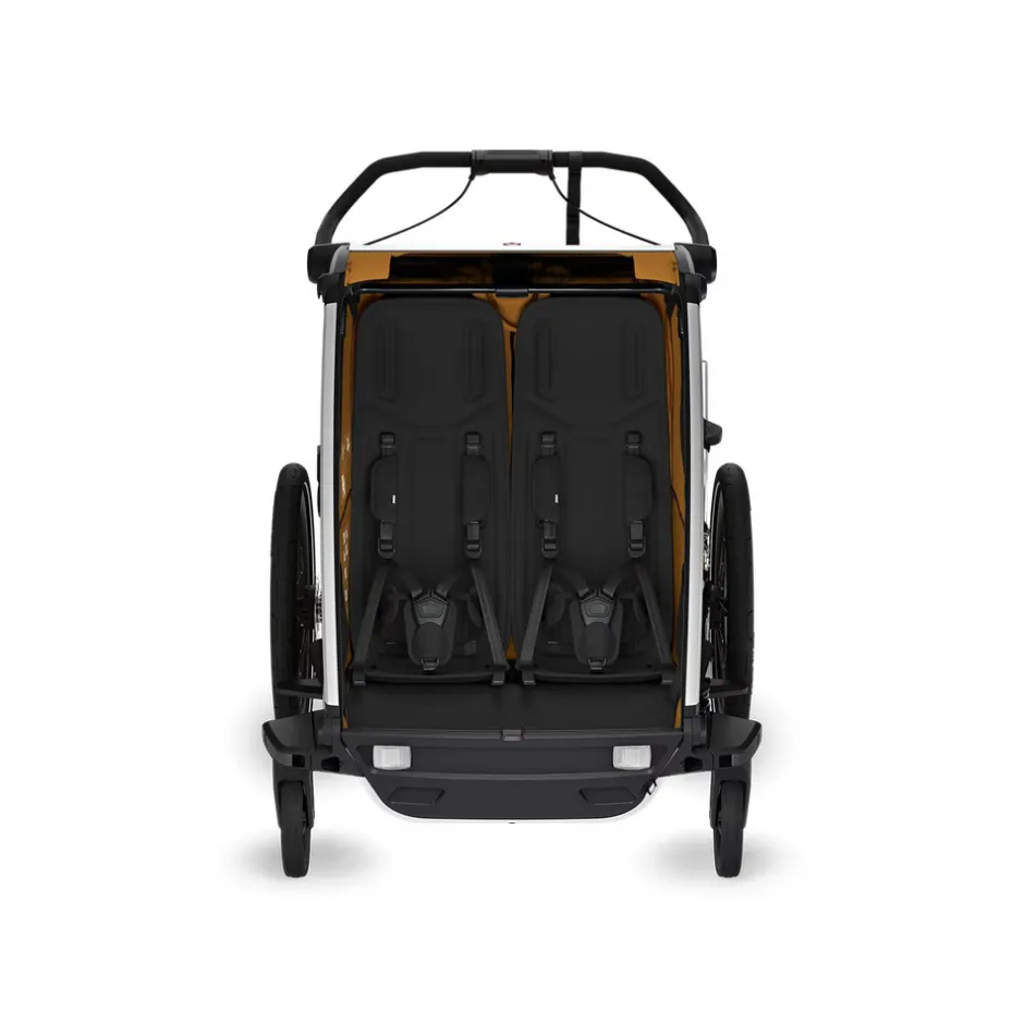 Modulsæderne betyder, at du kan vælge at have et barn siddende i midten eller to børn i hver sin side af anhængeren.