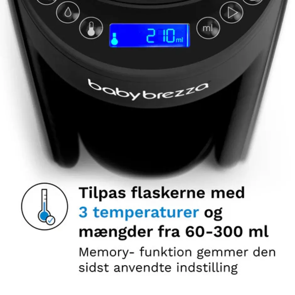 The Baby Brezza Formula Pro Advanced dispenser er den mest avancerede måde automatisk at lave en varm flaske med modermælkserstatning øjeblikkeligt. Formula Pro Advanced blander formel og vand til den perfekte konsistens uden behov for måling, blanding, ventetid eller besvær. Du kan tilpasse din babys flaske med 3 temperaturindstillinger, og dosere formel eller vand i intervaller på 30 ml mellem 60-300 ml. Den fungerer med stort set alle formelmærker og alle flasketyper.