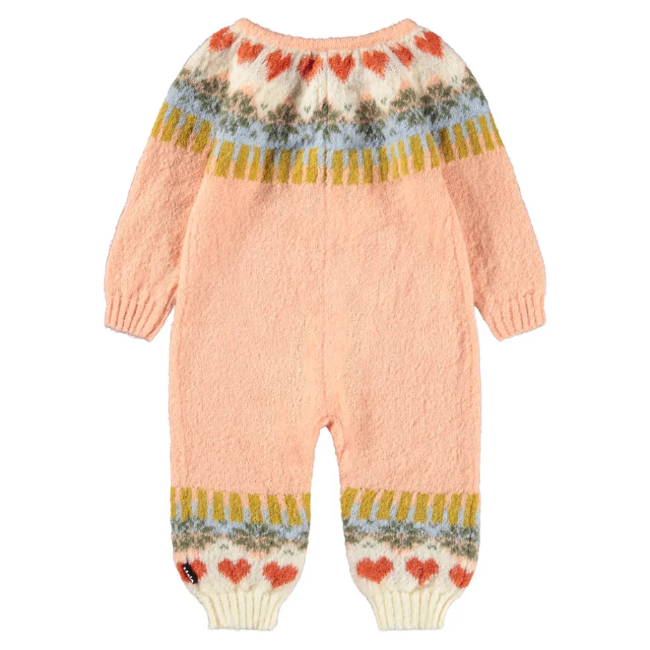 Heldragt fra Molo i blød alpakauld med nordiskinspireret mønster. Dragten har lange ærmer og ben samt en praktisk knaplukning foran, der gør den nem at tage af og på.